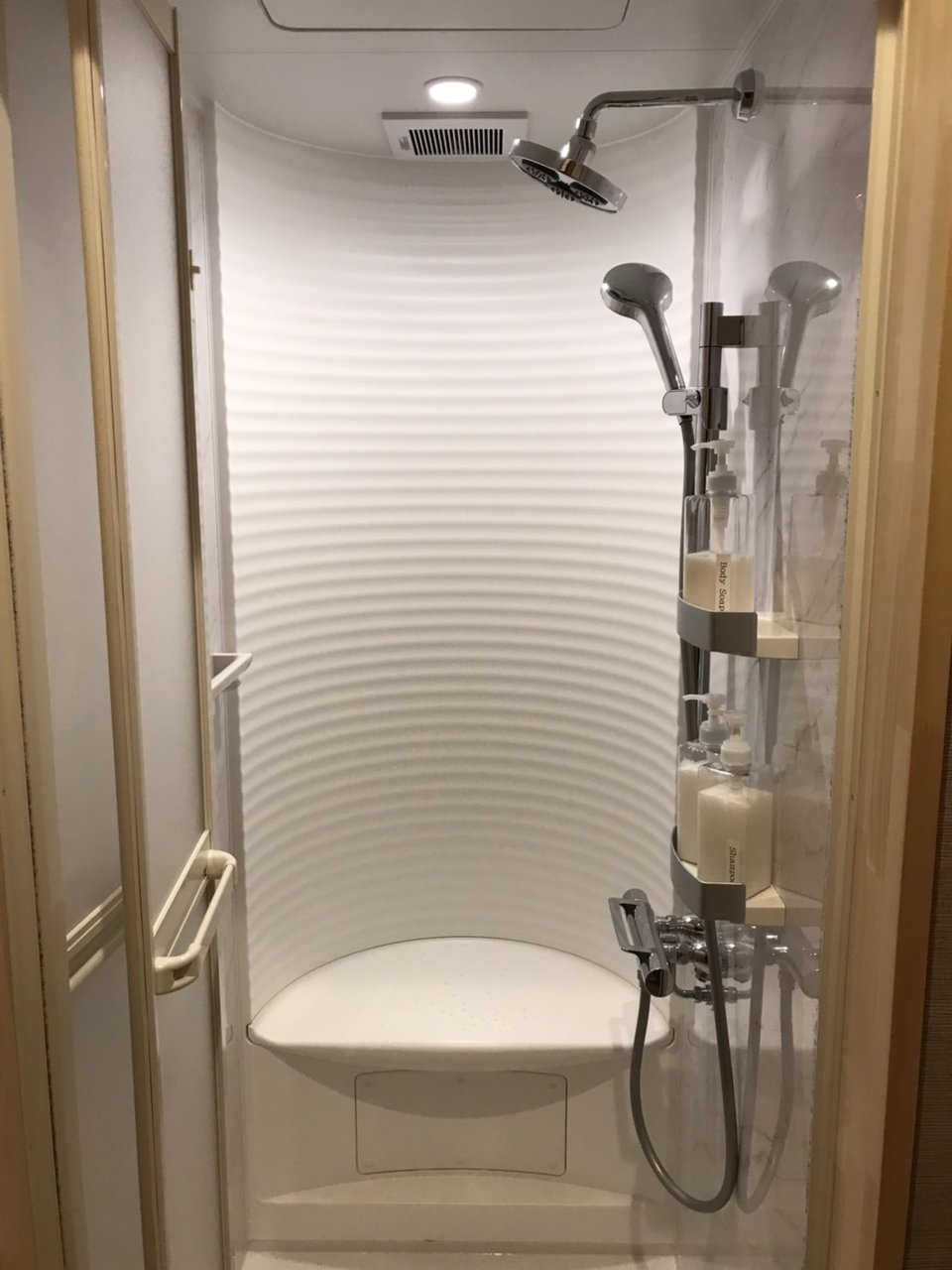 洗面化粧台が3か所、シャワーブース2か所が共用となり、バスタブ付きの浴室はございませんが、徒歩15分のところに、日帰りの温泉施設などもございます。