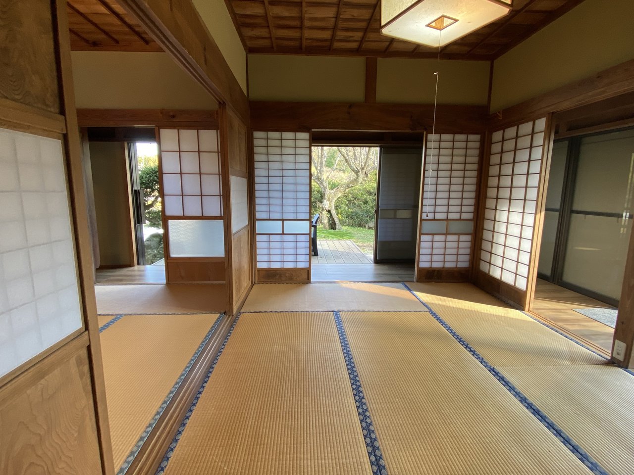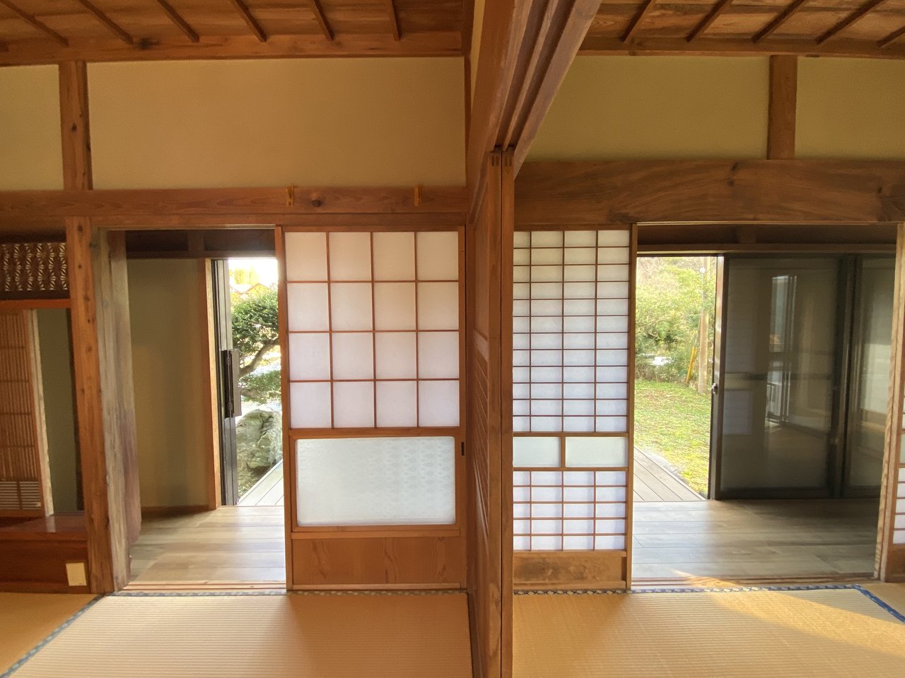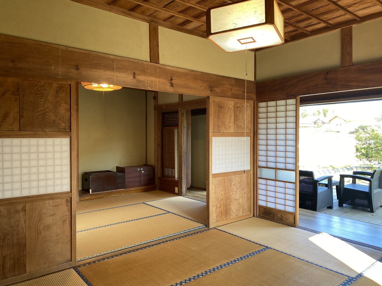 ●敷地面積は3000平米ぐらいありますが、その中に五棟の古民家とテント3つがございます。