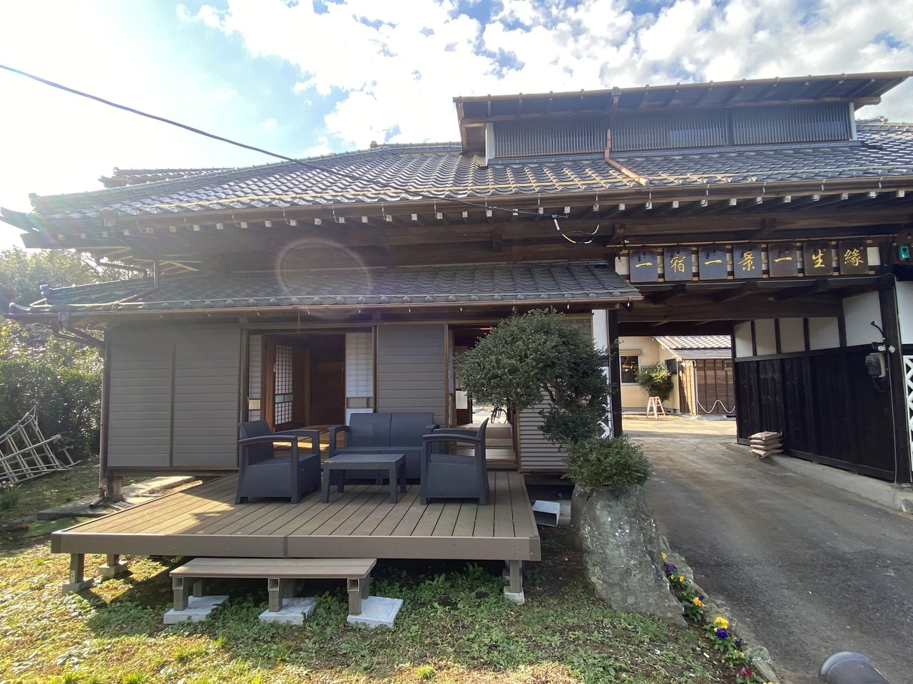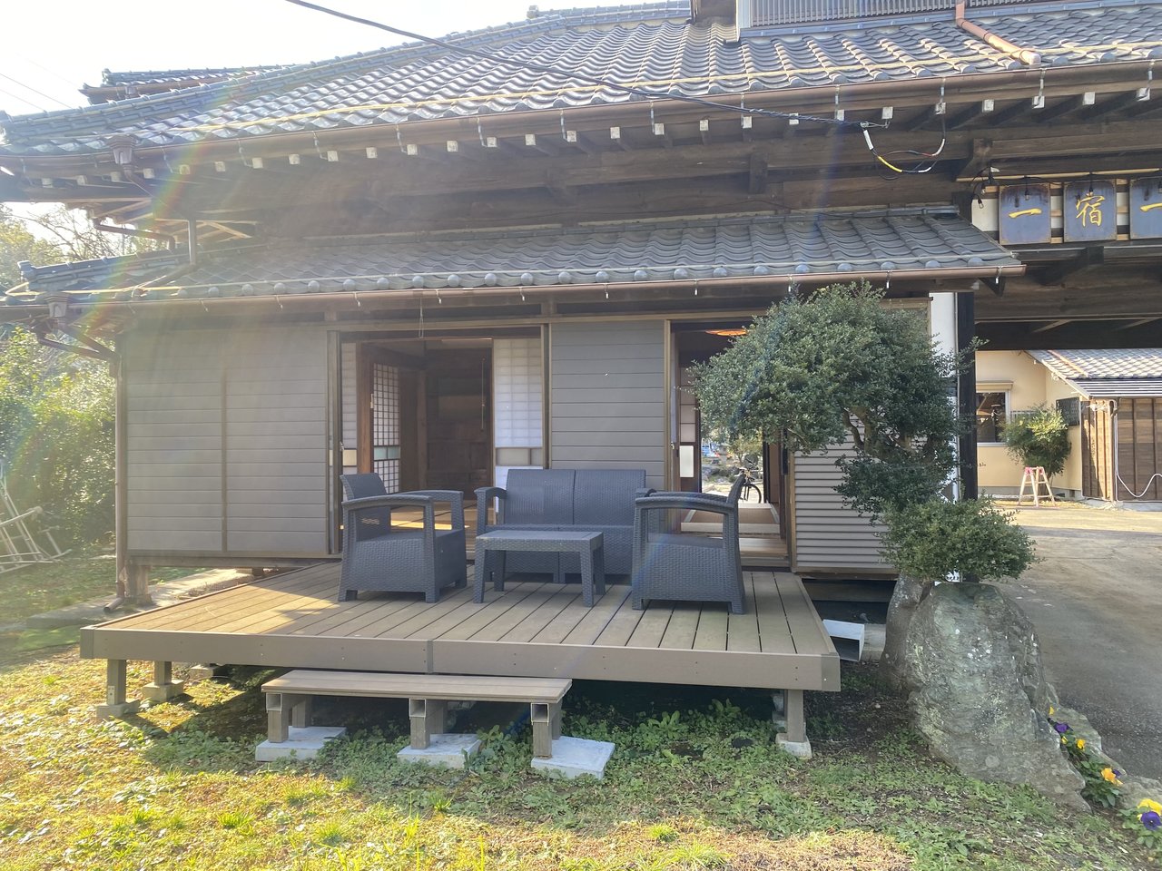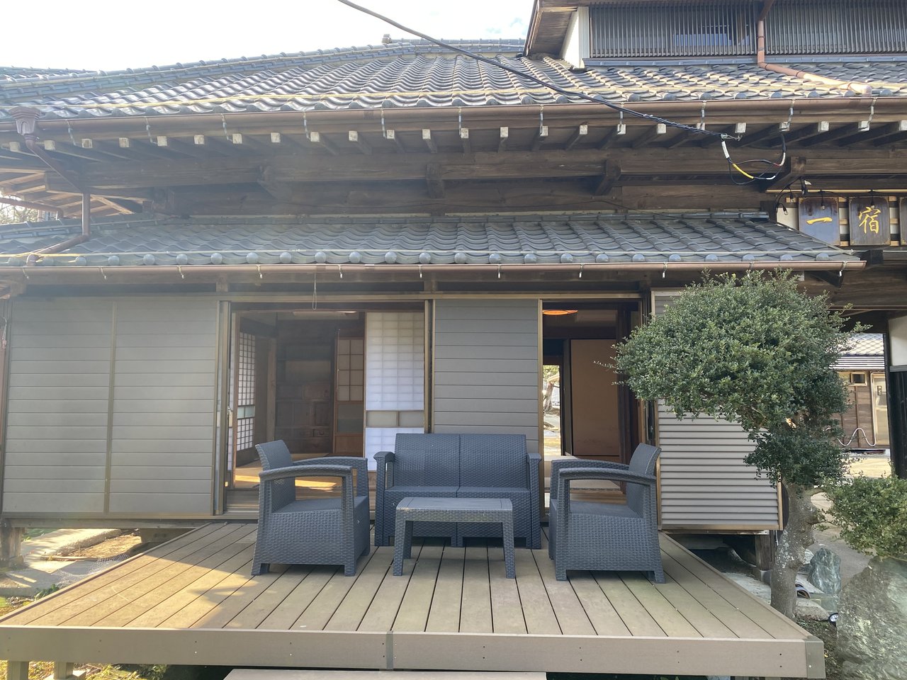 ●【一宿一景一生縁】の看板がついている大きな門は敷地全体への入口です。