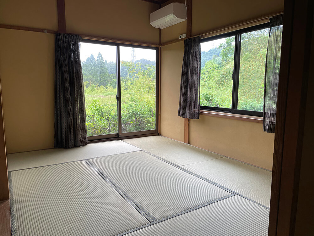 千葉県君津市大戸見旧名殿、都心から車で1時間ほどの距離ながら里山の自然に囲まれた小さな集落のはずれ。久留里街道を入ってすぐ、人里ながらお隣との距離も十分にある静かな環境です。小櫃川が蛇行により深い谷を形づくり、その間にぽっかりとできた空間に立地しているため日当たりと風通しに恵まれています。