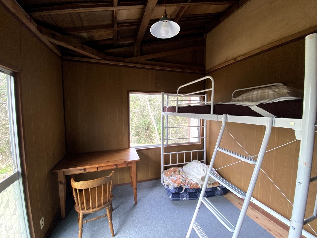 客室2部屋とキッチンやリビングがある平家です。