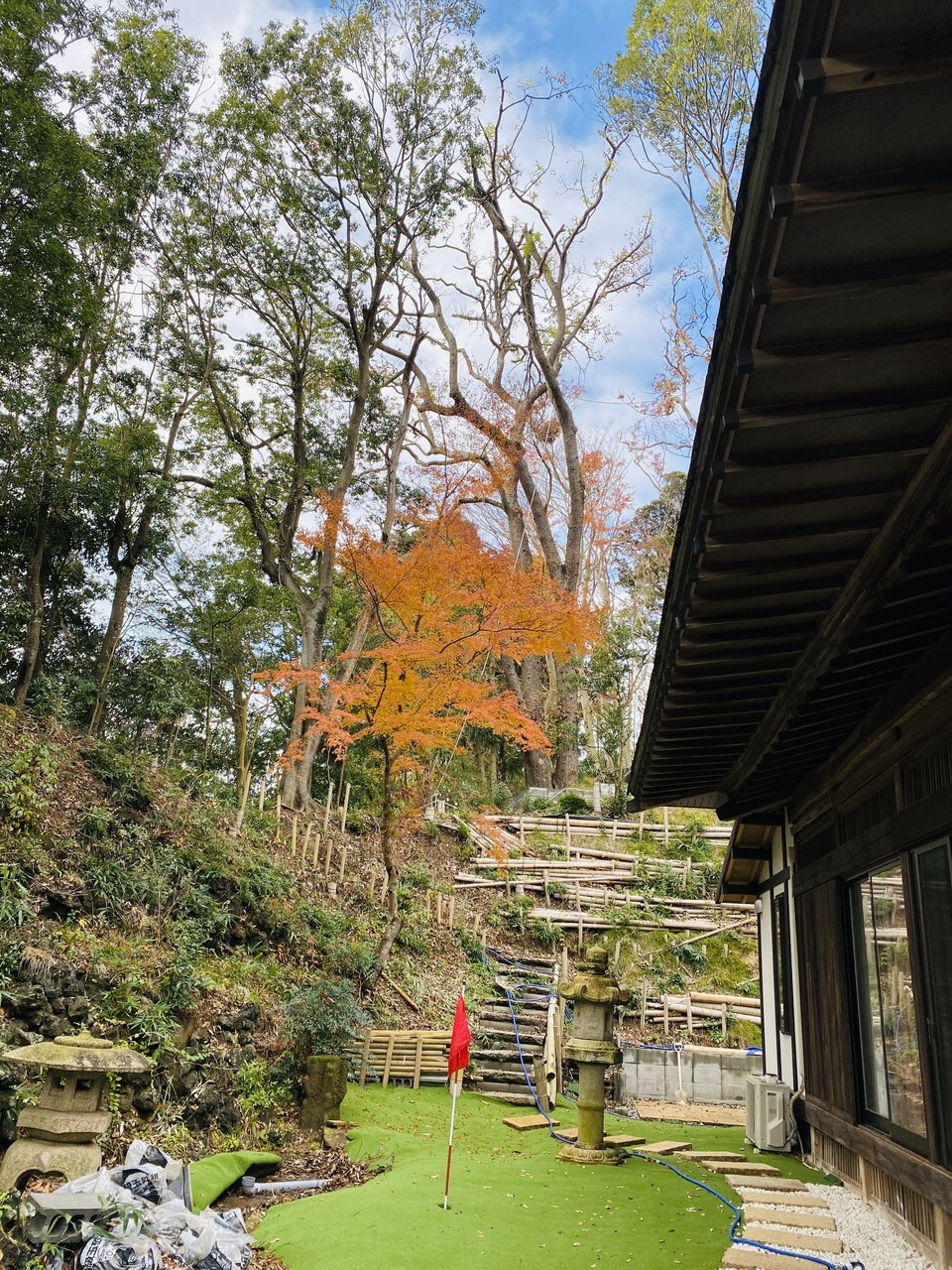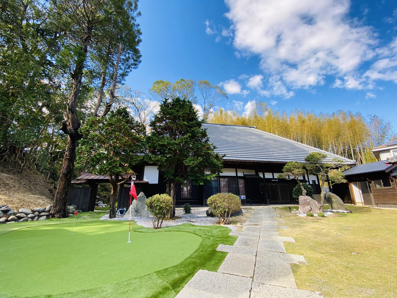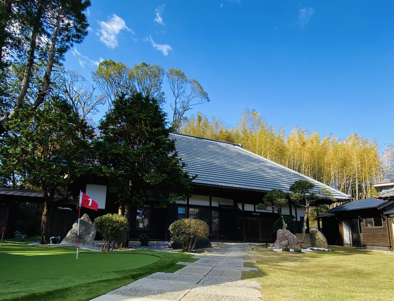 庭のパッティング練習グリーンはゴルフファンの皆様の憩いの空間。