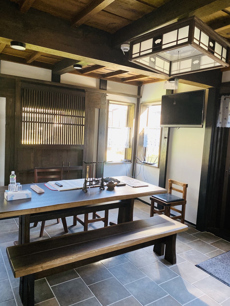 竹林を背に広大な敷地に建つ築百年以上の古民家、母屋の一部に和室「財」と「宝」の客室。