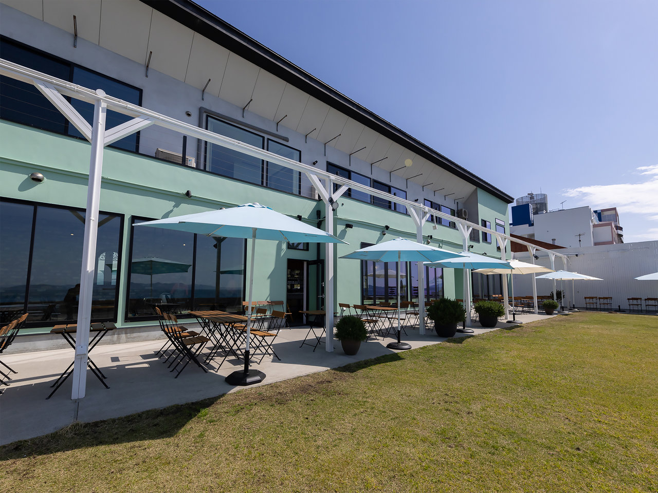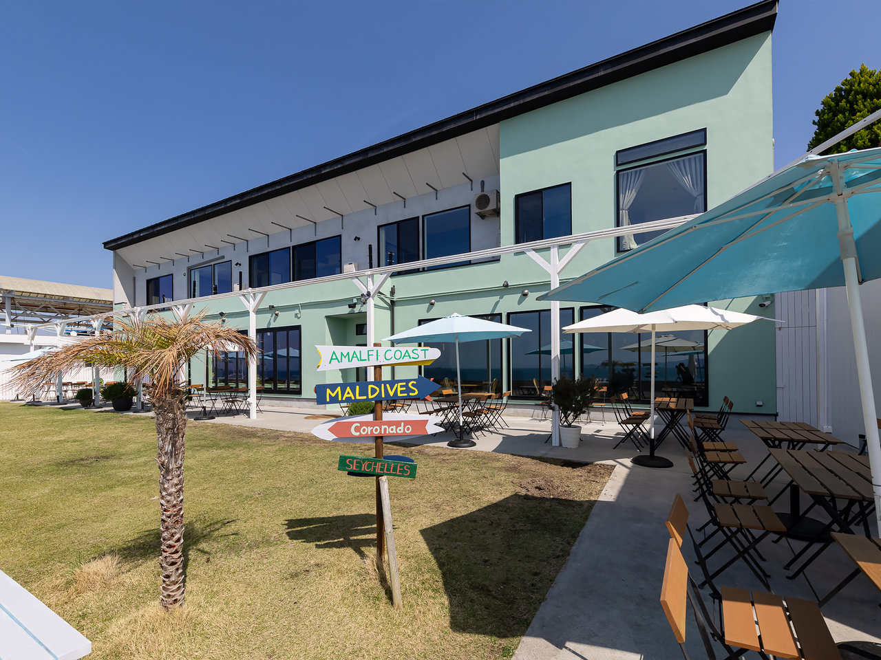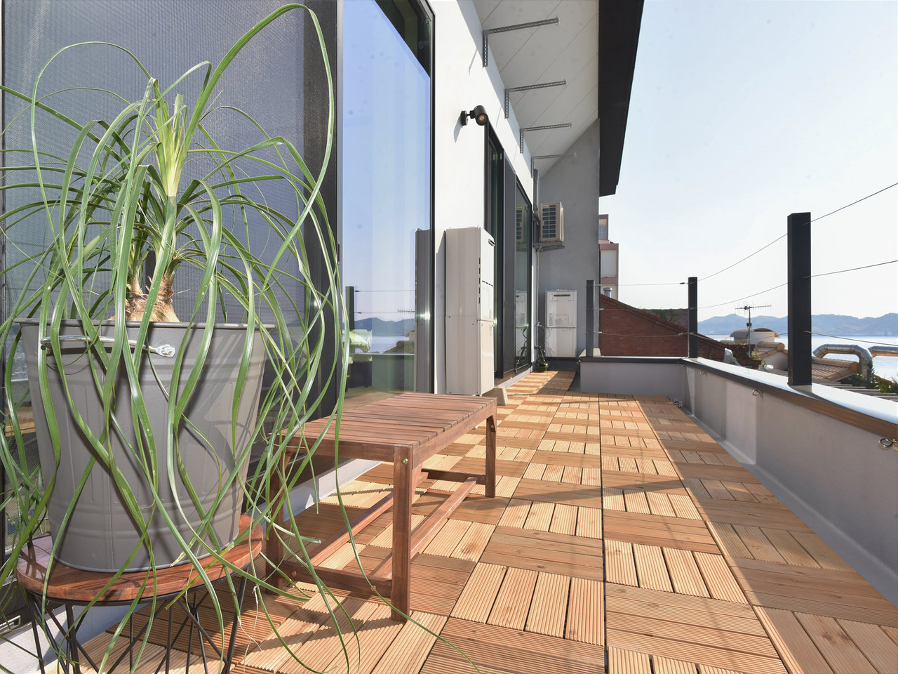 海側と南側の二面ガラス張りの広々空間。