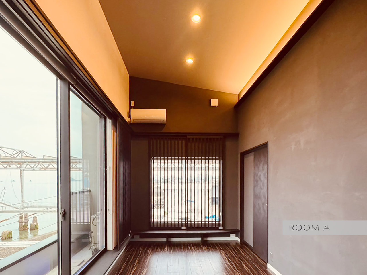 海に面した西側はどのお部屋もオーシャンフロントの全面窓。