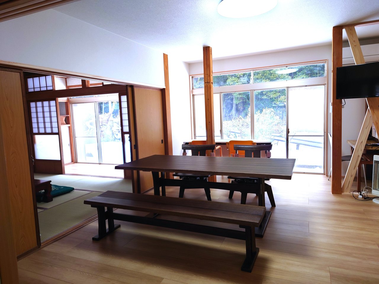 敦賀市の街並みを一望できる旗護山の中腹に位置した一棟貸し切りの宿です。和室や縁側など日本の邸宅の良さを残しつつ、さらに快適に過ごして頂けるよう古民家を改装しました。