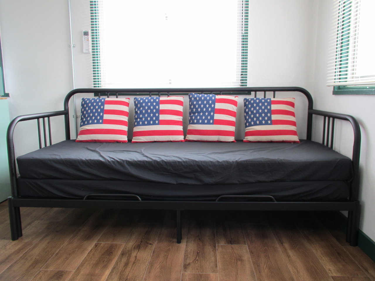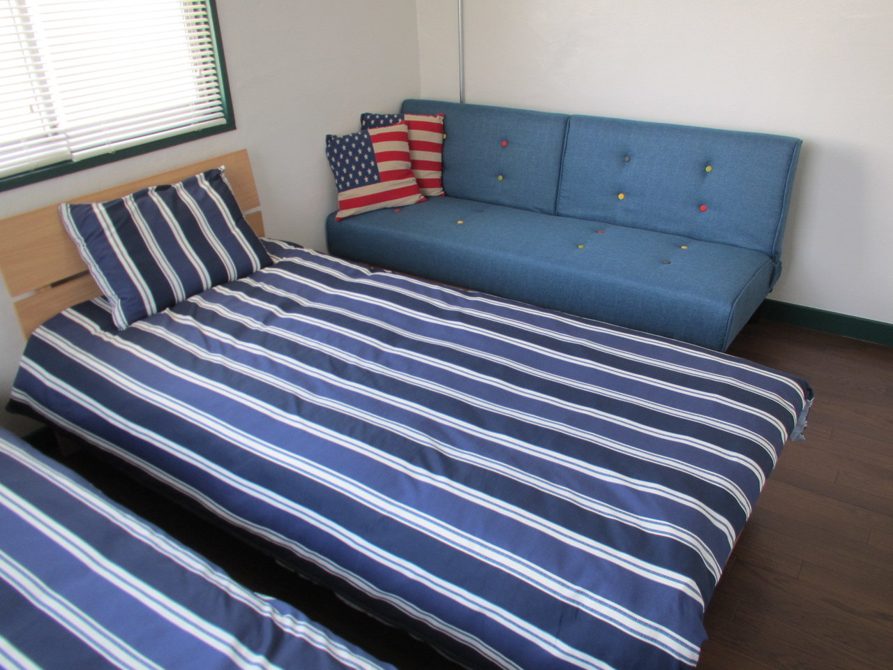 共用スペース:クイーンサイズベッド1台(寝具は2名分あります。)
