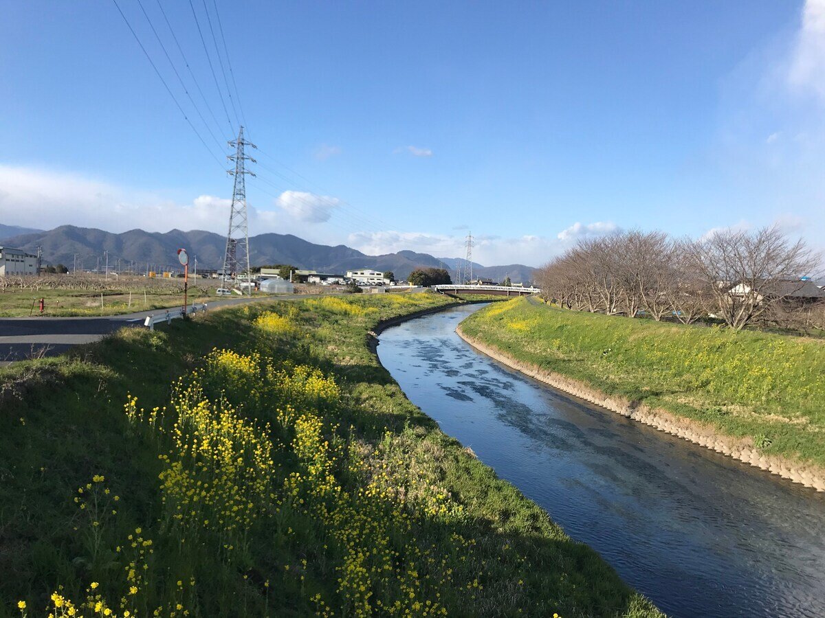 散歩が出来る範囲には、遠くに山を眺めながら三水川沿いを歩く散歩道。