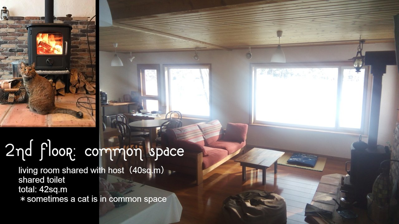 50平米あるゲストフロアにはキッチン、トイレ、シャワーはゲスト専用のものが完備。2階にはホスト共有の広いリビングスペースがあります。全てのお部屋から羊蹄山が望める贅沢‼
