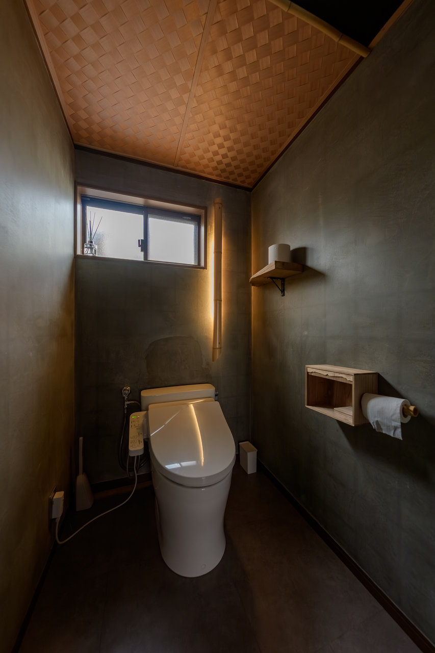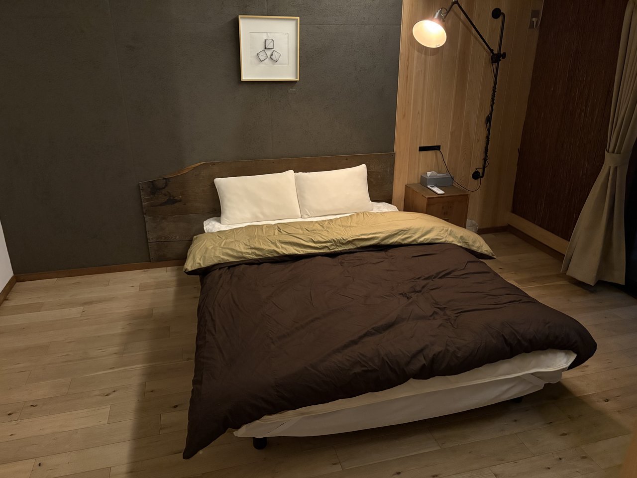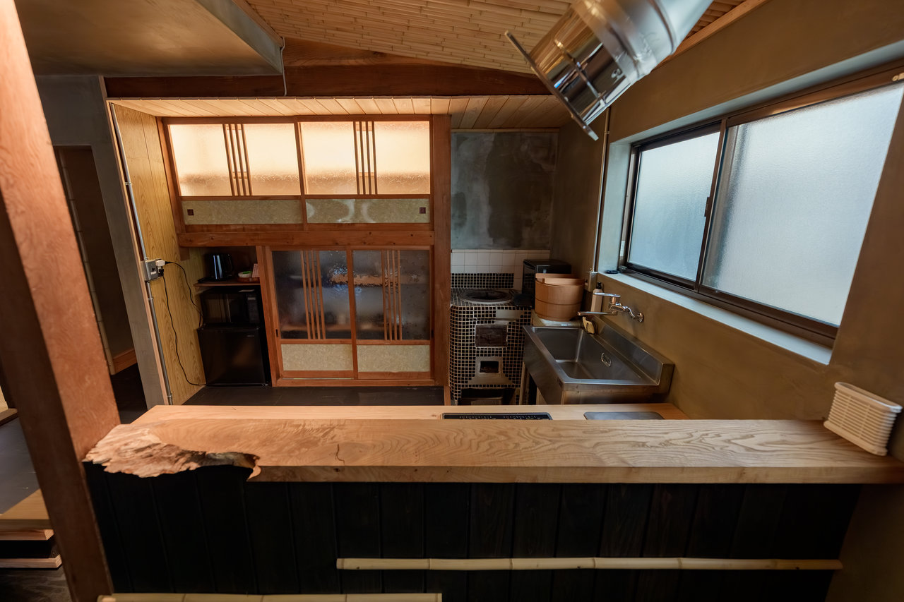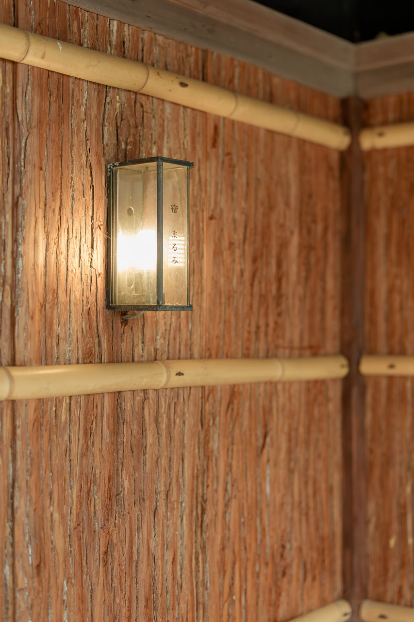 築100年の歴史を刻む太い梁や土壁。そこに、現代の感性を吹き込んだモダンな家具と柔らかな灯りを配置しました。