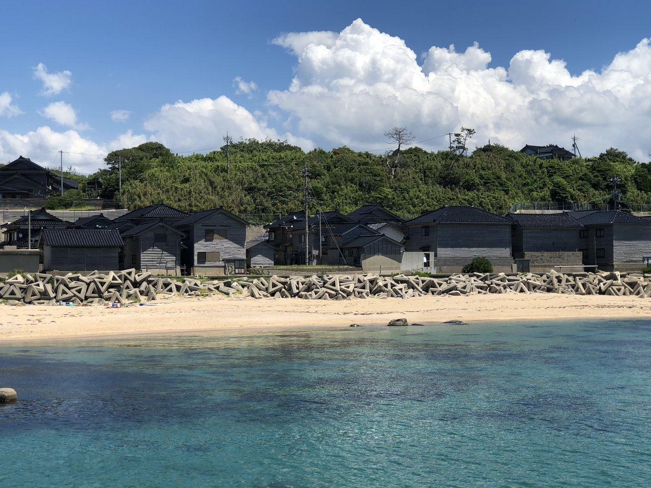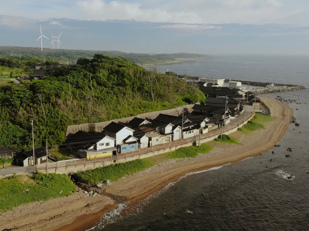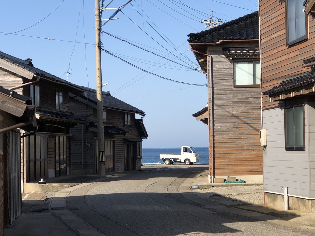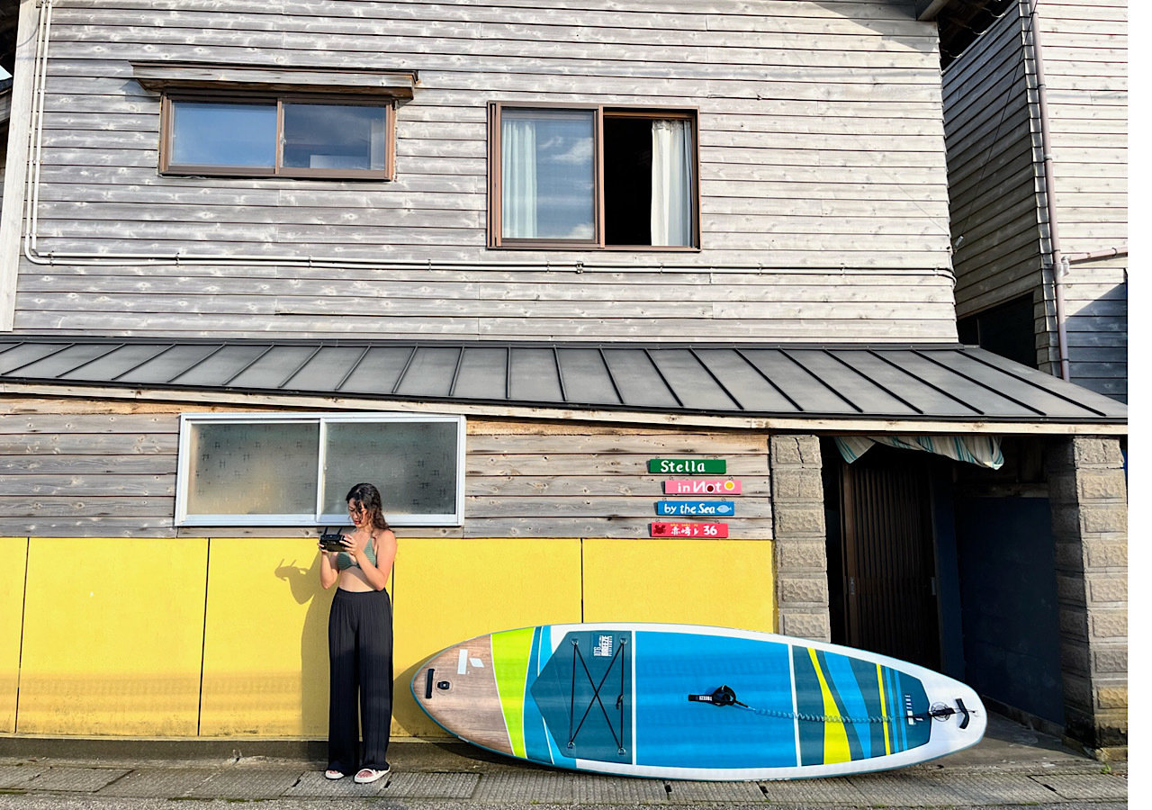 目の前には美しい日本海が広がり、のんびりされるのも良し、カヤックやSUP等のマリンスポーツなどもお楽しみいただけます。赤崎という異空間の町並みをご覧ください。