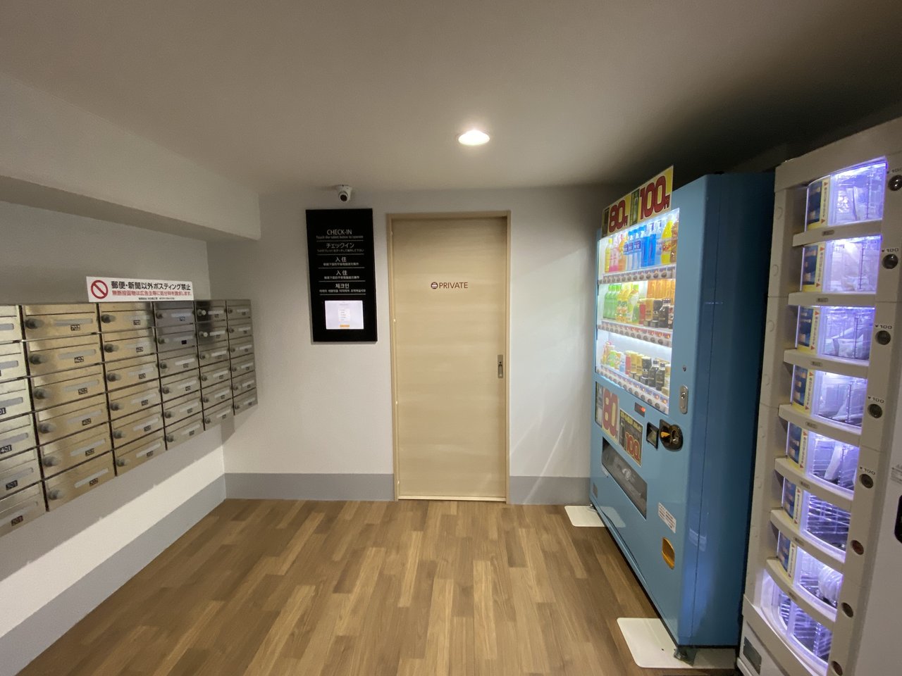 エントランスホールの、セルフチェックインシステムにて登録後、入室可能。