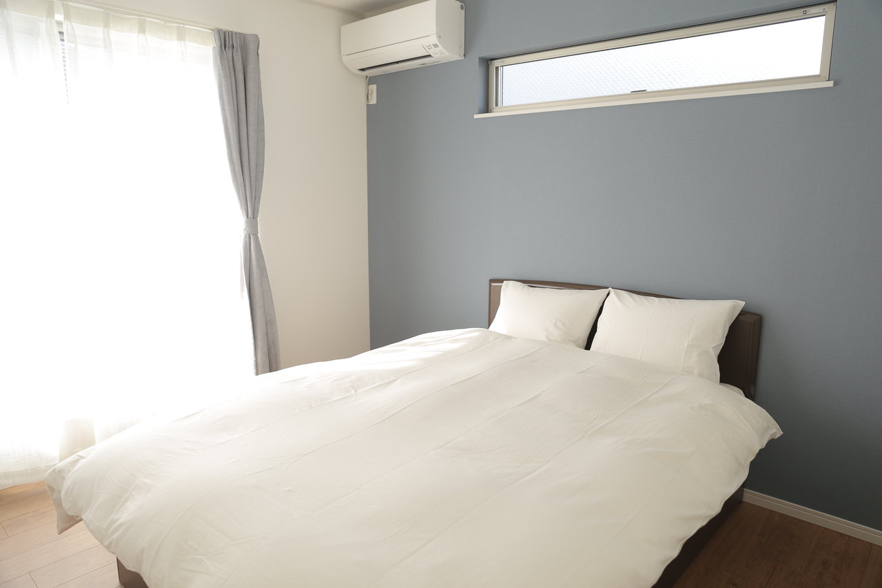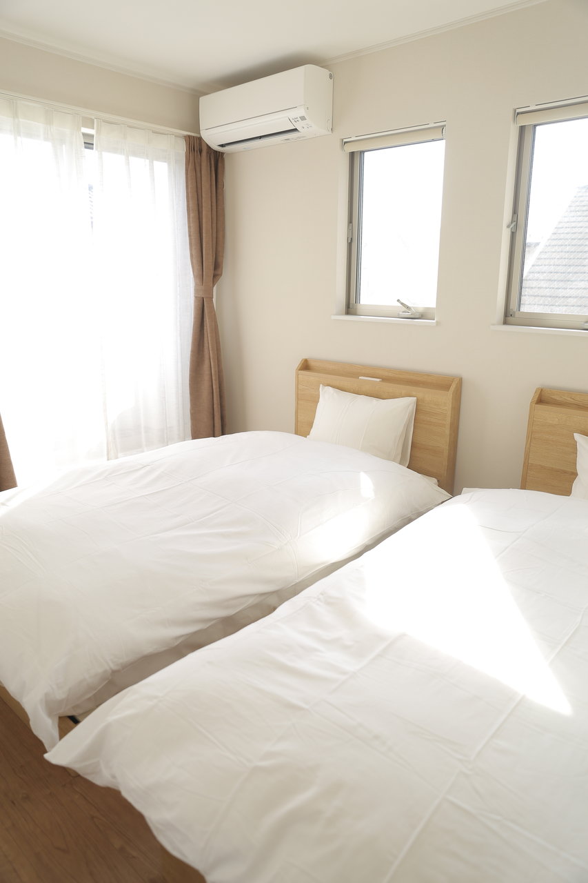 戸建て一棟4LDK、ゆったり100㎡、リビング20畳、寝室4室でプライバシー確保、各部屋施錠可能なので男女で利用できます。トイレ2ヶ所、化粧洗面台2ヶ所、シャワールーム、大浴槽付きお風呂場、大人数にもご対応出来ます、1階、2階それぞれにテレワークができます、採光通風が良好