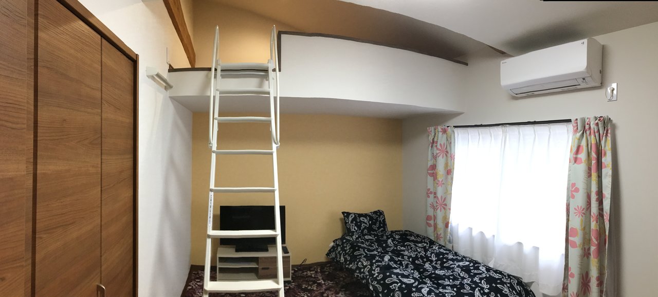 大変清潔なお部屋が2Fに三部屋あり各部屋にロフトがついています。各部屋に三人までは優に泊まれます。お風呂やトイレも二階についており、気兼ねはありません。
