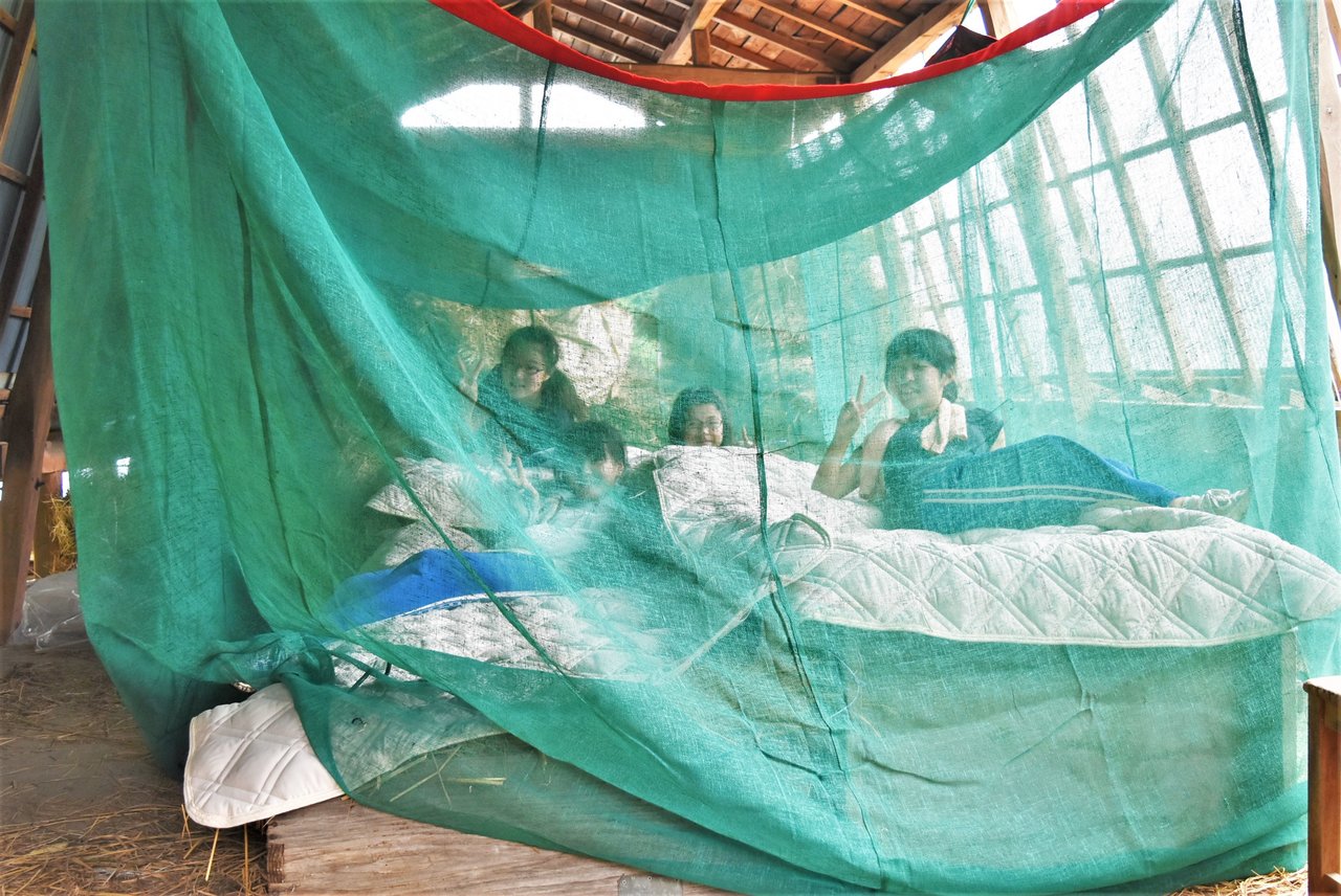ヤギ小屋の2階に藁のベッド(通称ハイジのベッド)があります。