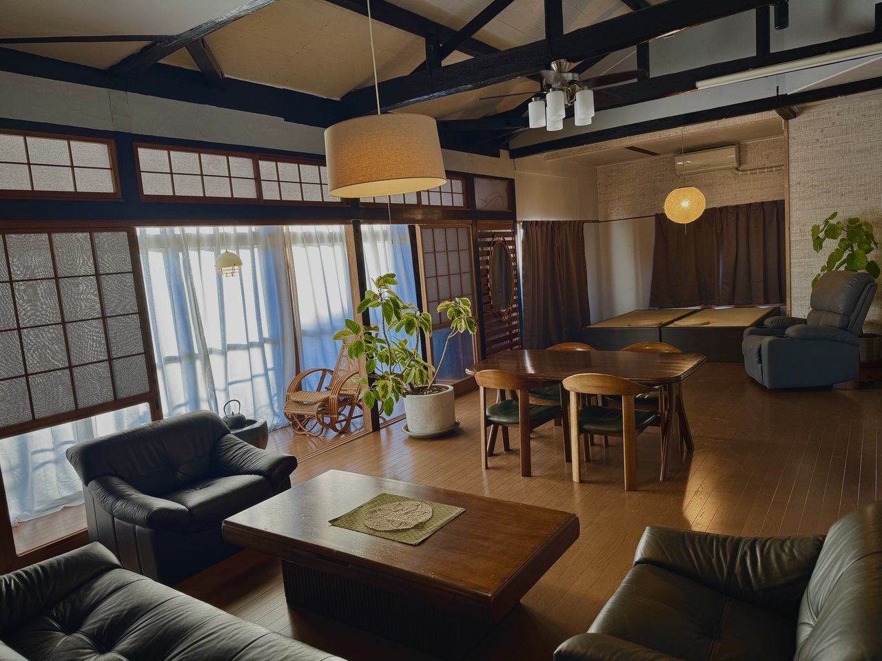 リビング・ダイニングは広々とした造りで、ソファ、座卓、テーブル席をご用意。