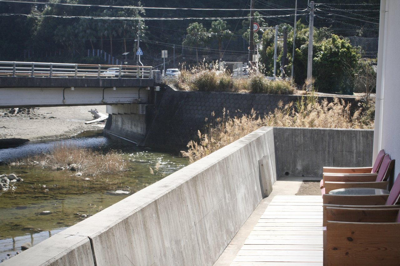 山の気配が残る静かな場所に佇み、隣には清らかな川、前には穏やかな海が広がります。