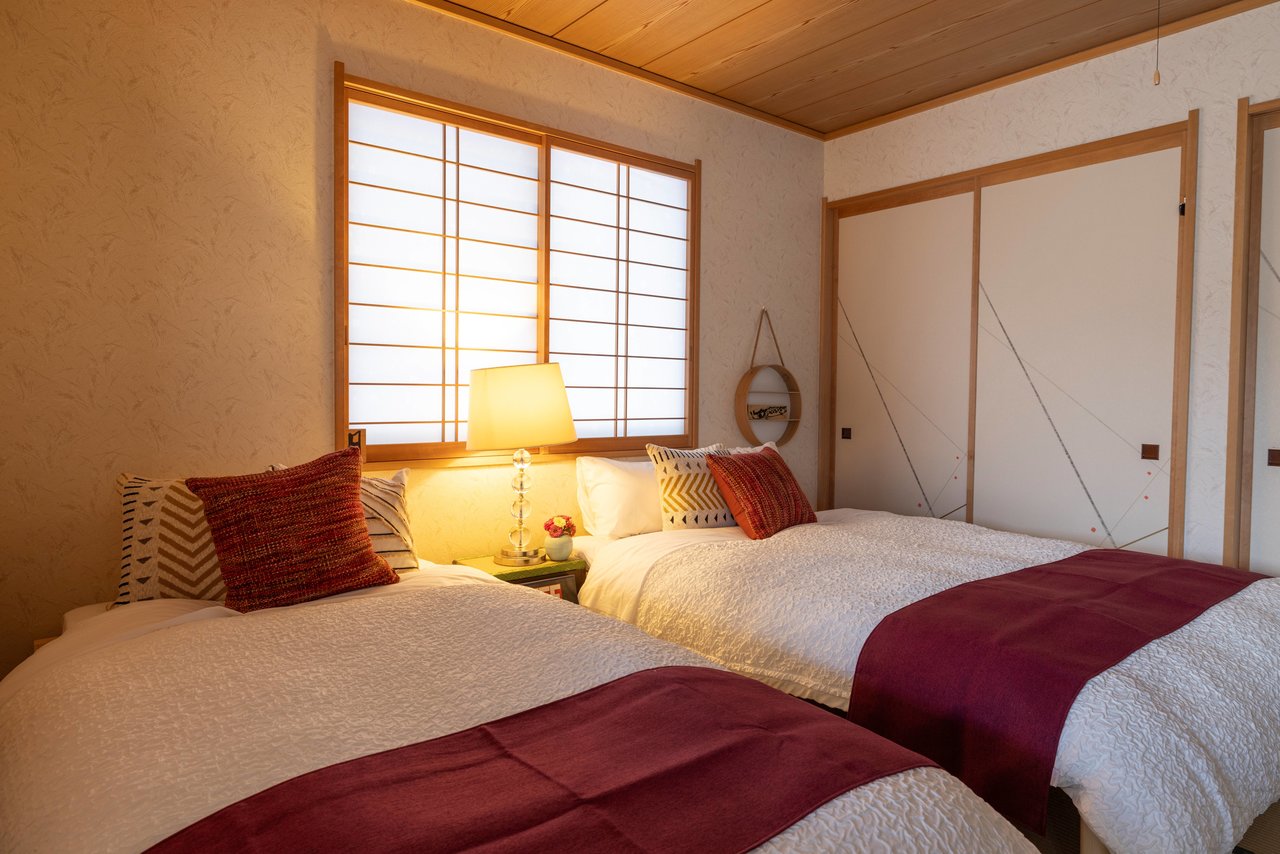 清潔で上質なリネン、オーガニックアメニティ。お気に入りの音楽を流しセンス良い家具に囲まれたホテル的な画一性ではなく個性を大切にしながらも快適さを求めました。ダブルベッド1台・シングルベッド1台・スペアシングルベッド1台の4名様使用となります
