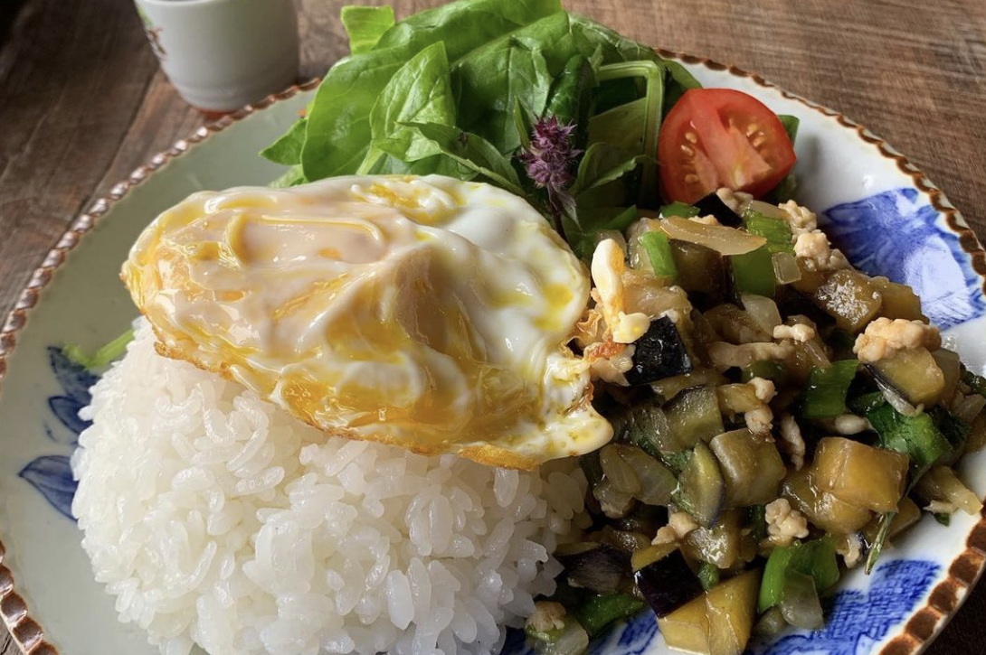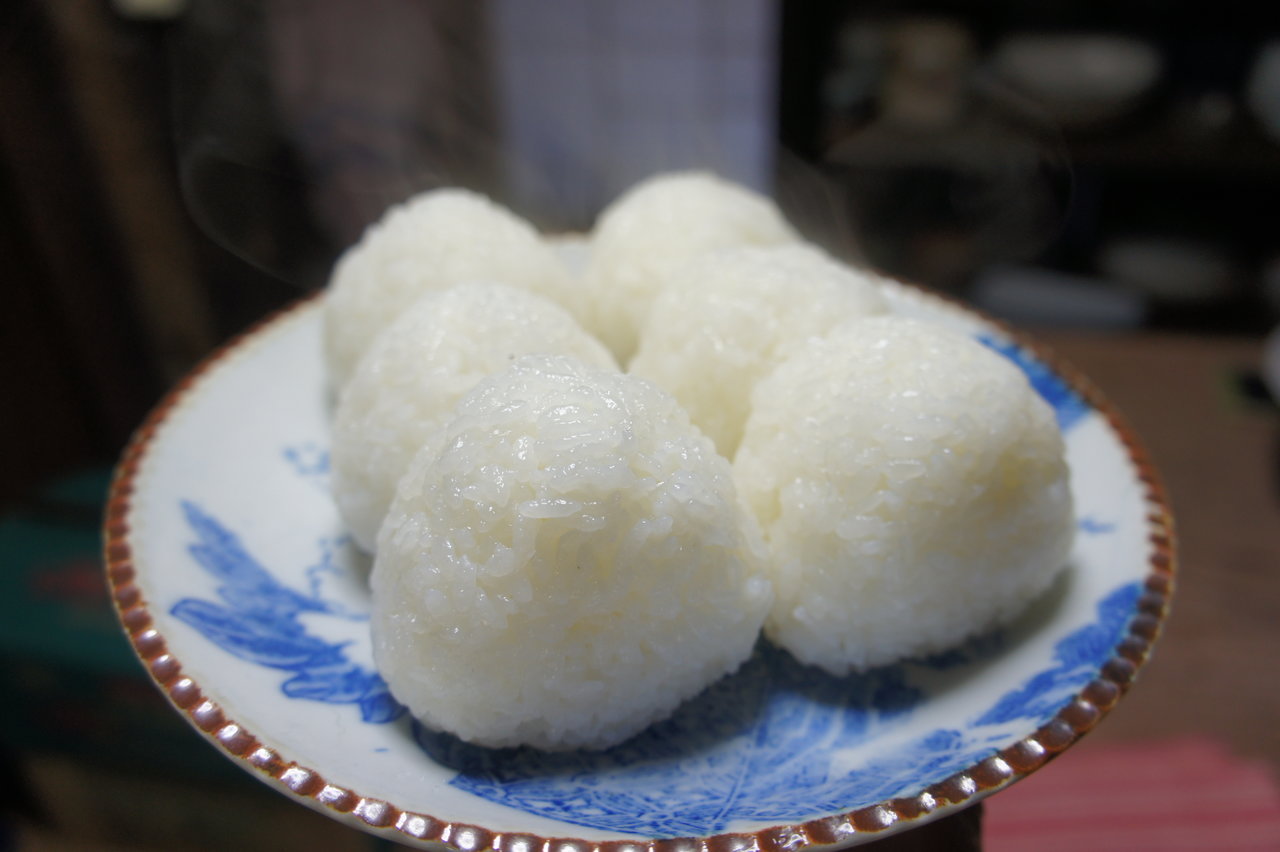 自家栽培やまんば米(無農薬米)おむすび定食(一汁一菜)1000円