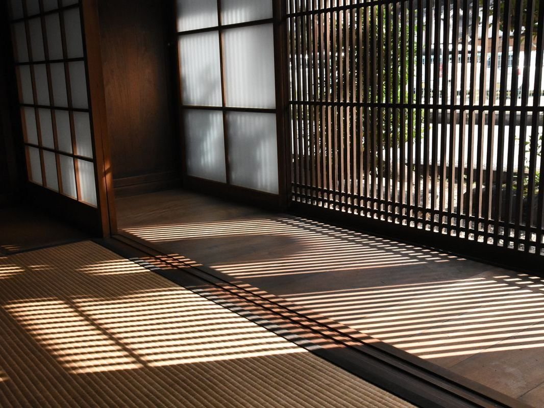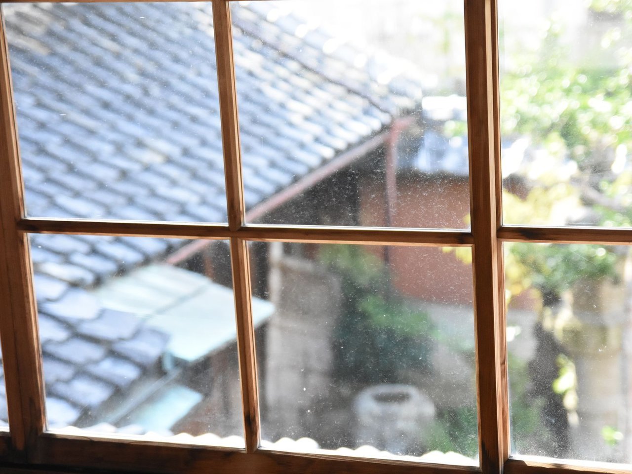 仏間からは、格子越しに重要伝統的建造物群保存地区の古い町並みが見えます。