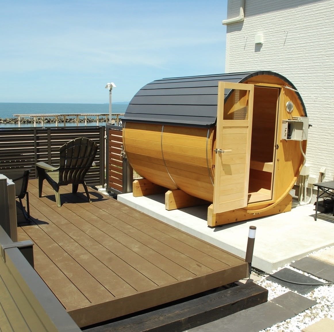 夕日が日本海に沈む最高のロケーションにある、本格フィンランド式バレルサウナ付きコテージで最高の時間、癒しの空間を友人、ご家族と楽しみませんか。