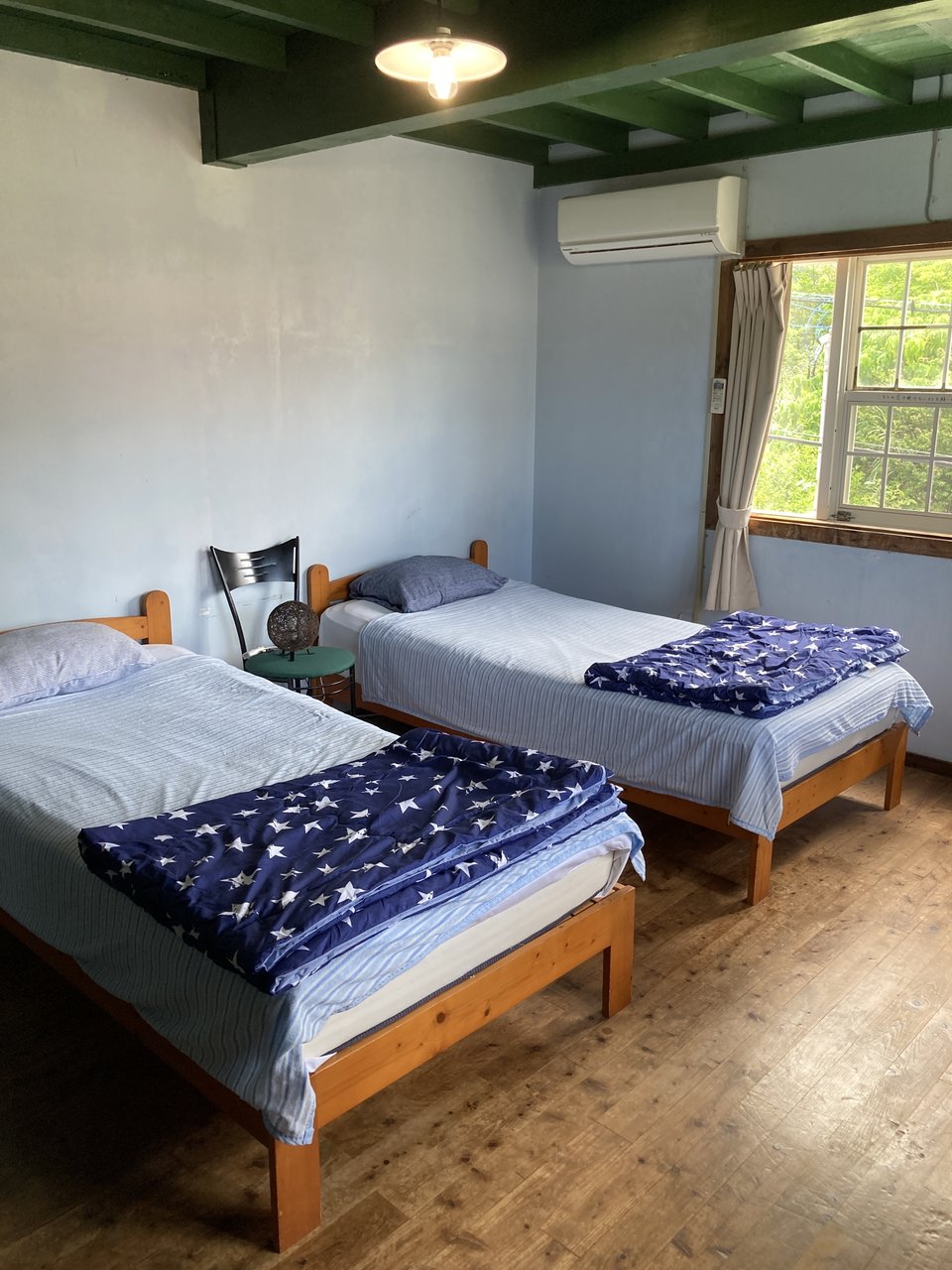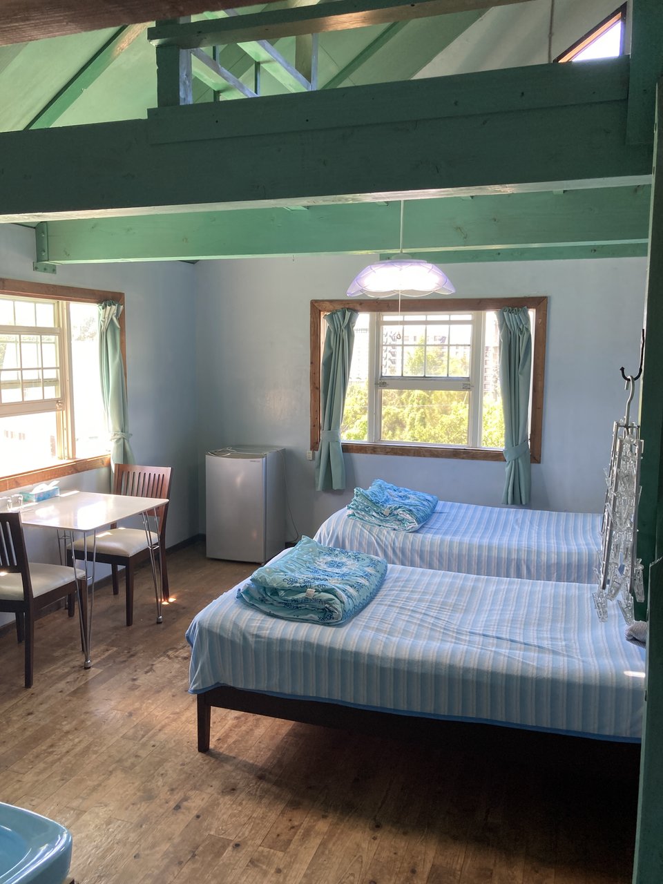 洋館づくりの建物で客室は天井が高く、ロフト付きのツインベットの客室になっています。