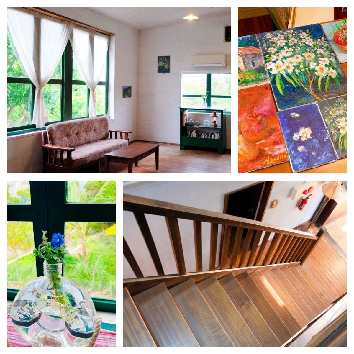 また、雨の日には油絵に囲まれたダイニングルームで、沖縄の歴史、やちむん・紅型など民芸などの本を読んだり。