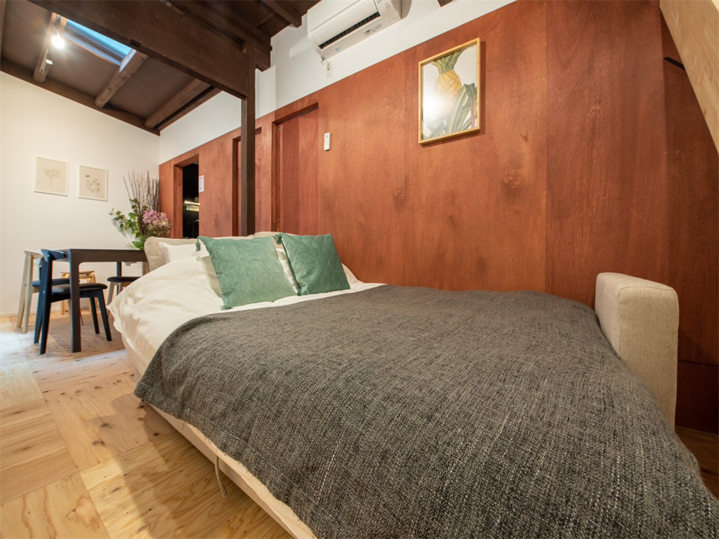アパートメントタイプなので、2階へ上がるとグランピングをイメージしたベッドルームになりお子様も楽しめます。