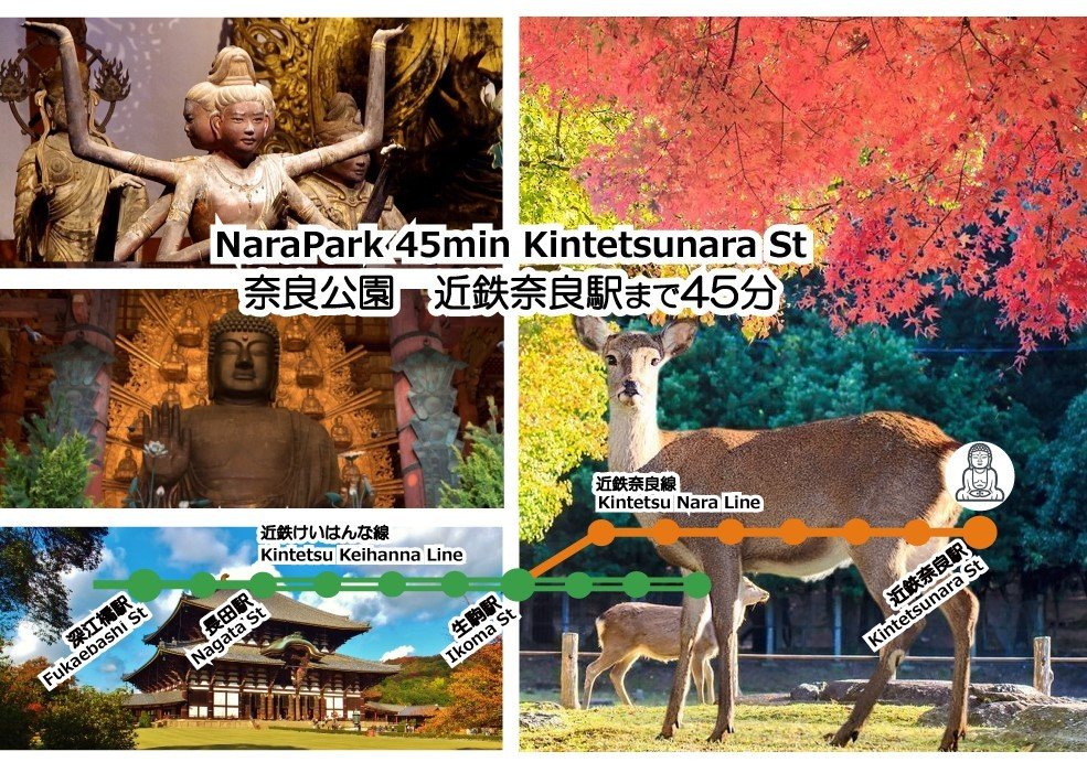 <奈良公園> 近鉄奈良駅へは乗換一回で40分