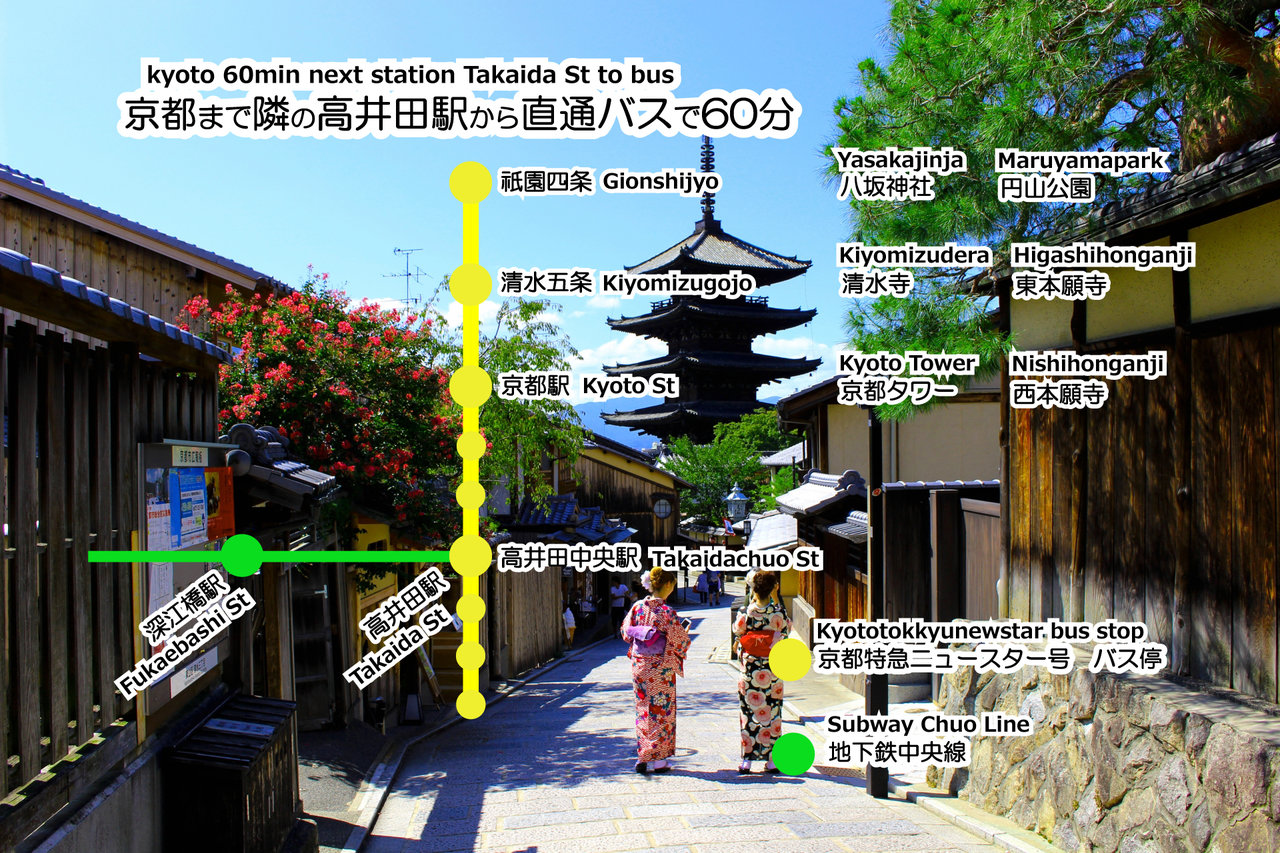 <京都> 隣駅の高井田駅から直通バスで約60分