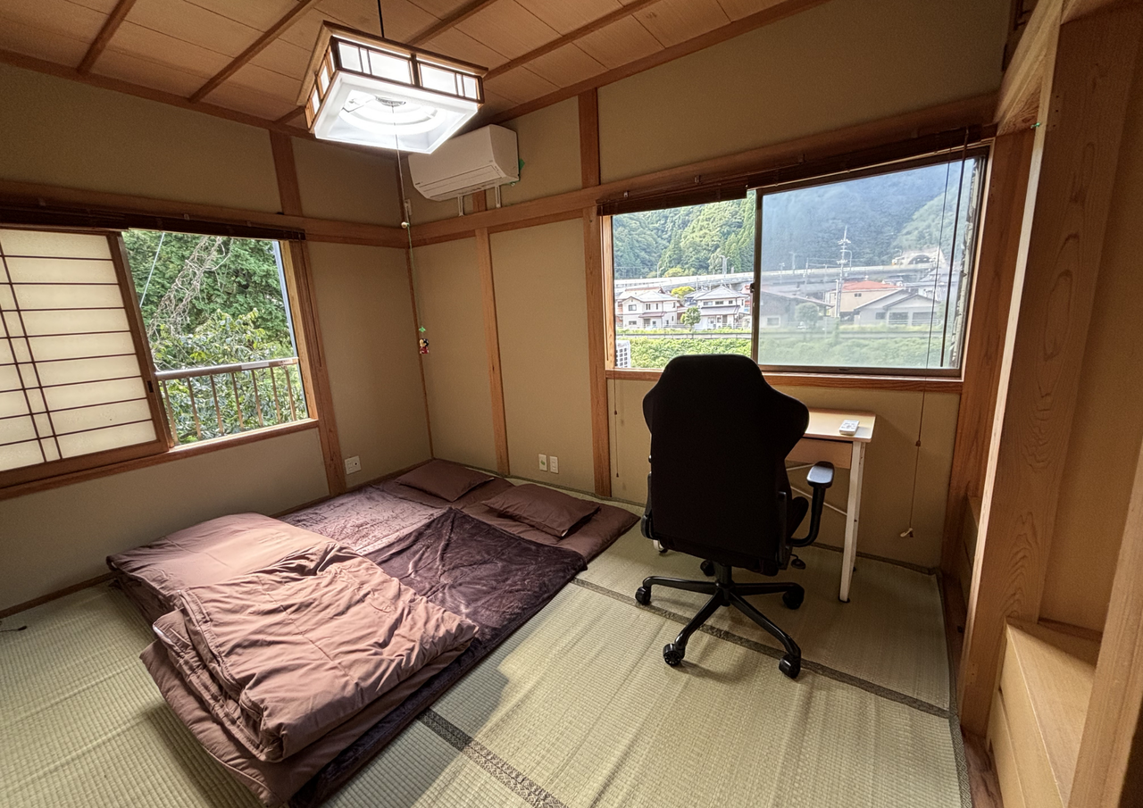 敷布団(厚め)×5枚 敷布団(薄め)×5枚 掛布団(夏用)×5枚 掛布団(冬用)×5枚 シーツ×5枚 まくら×5個 1階居間に3組 2階居間に2組ご用意しております。