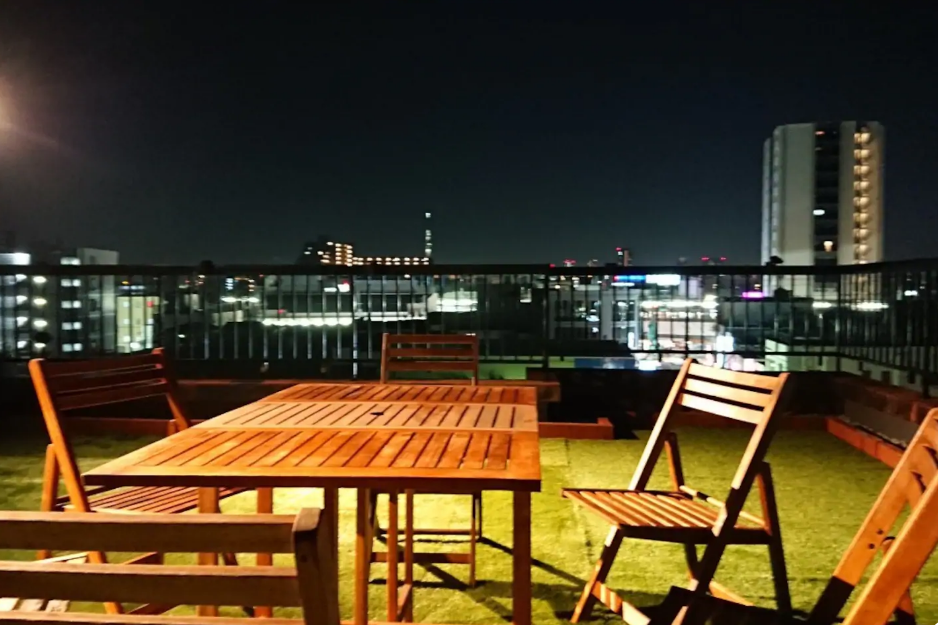 このお部屋には和室と洋室の寝室があり、とても広いお部屋ですので長期間の滞在にもおすすめできます。また、共用部分の屋上は芝のガーデンとなっており、自由にご使用いただける空間となっています。