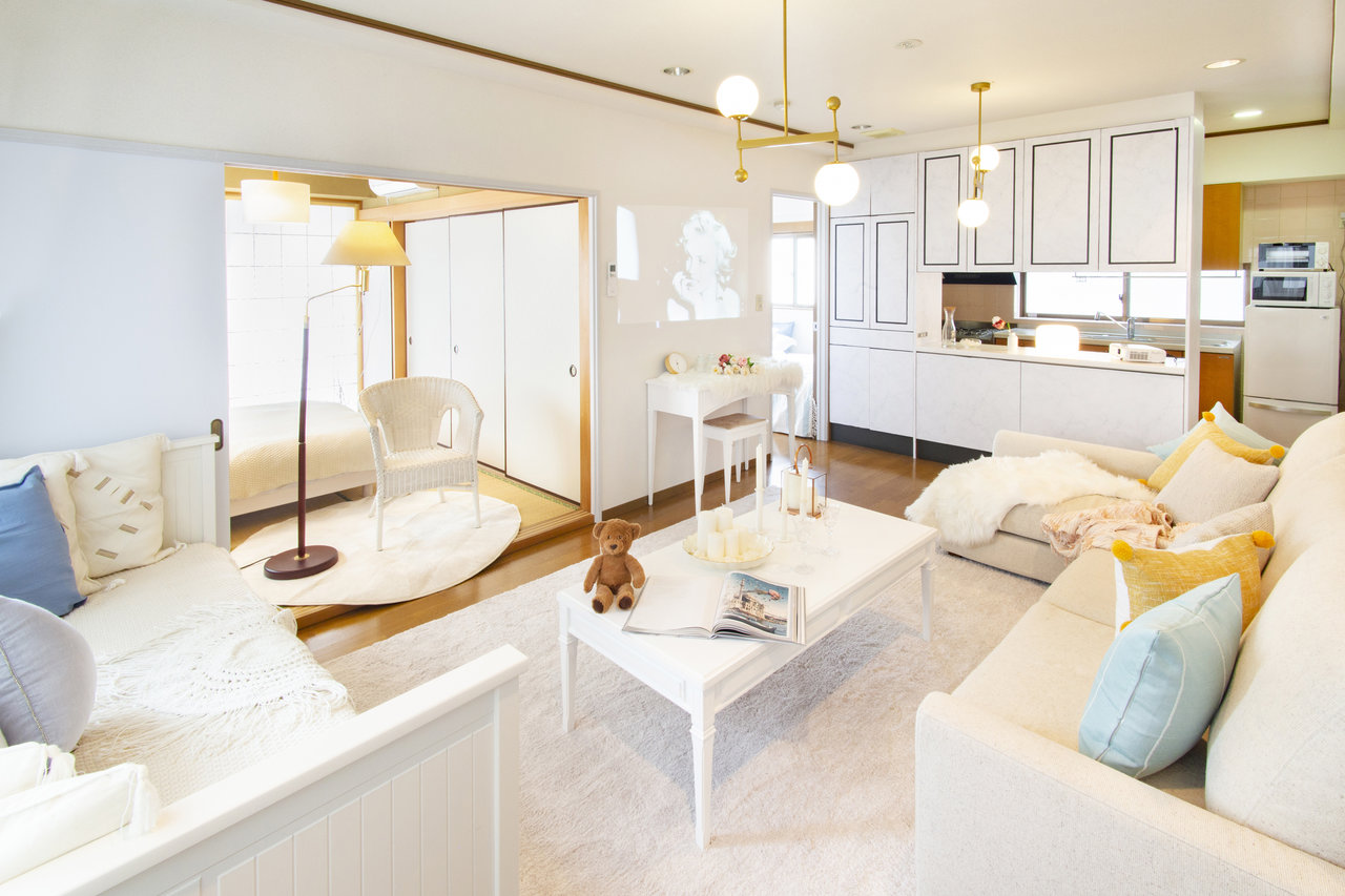 玄関が広く、お部屋の収納スペース多数。充実のカウンターキッチン、ゆったり1.5帖のバスルーム、広いリビング…この90㎡の一室は東京滞在に便利です。