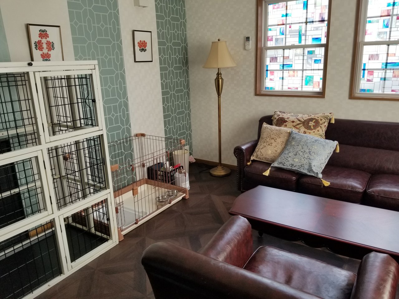リビングにはペット用のケージもあり、愛するペットと一緒に過ごせます