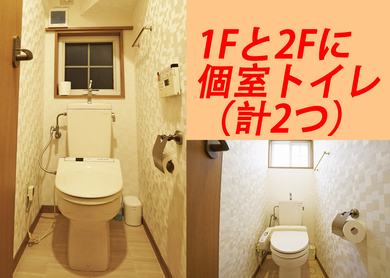 トイレも各階にあり便利、最大6名様までご宿泊OK