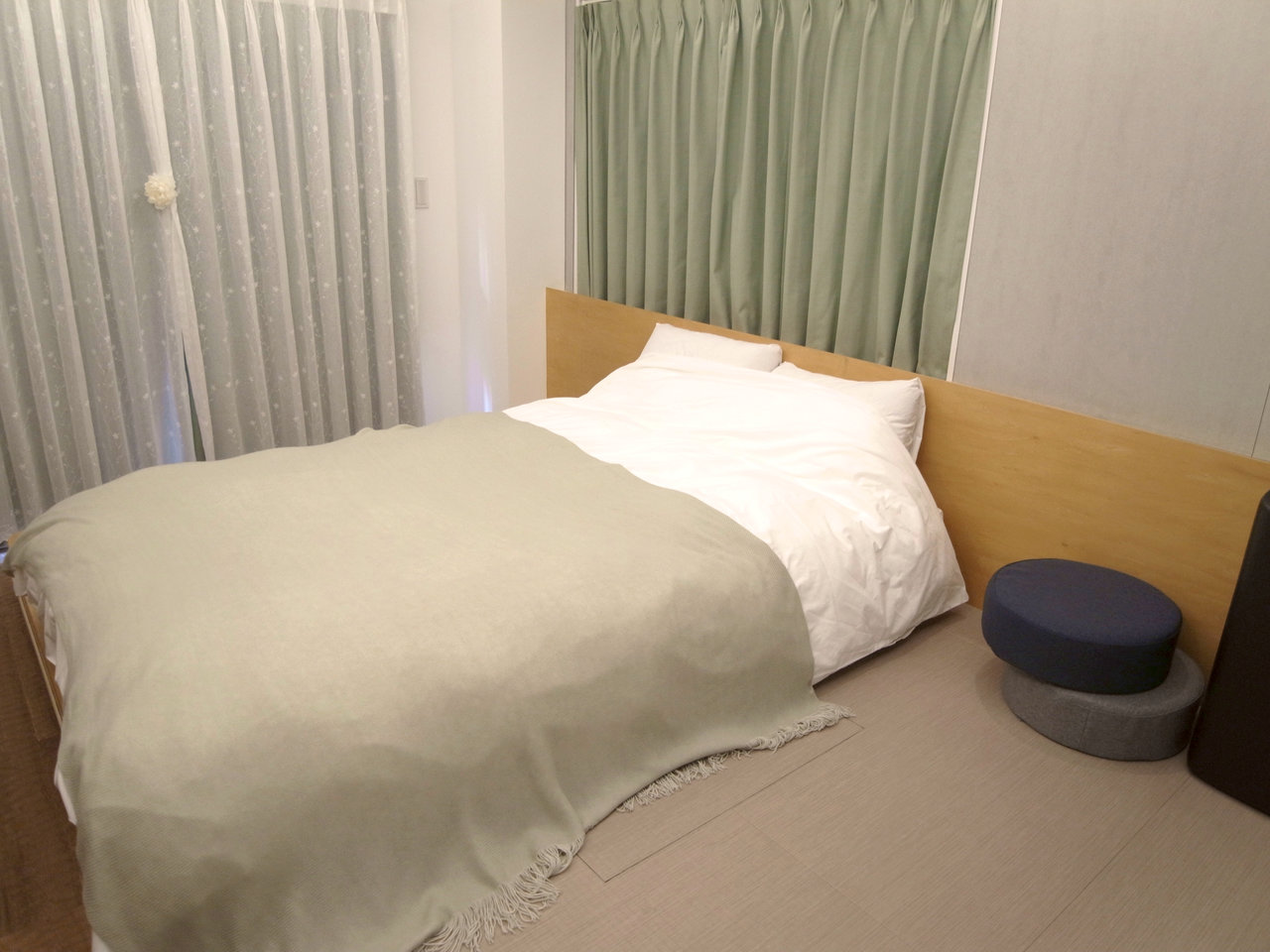 1名様の場合、1部屋にセミダブルのマットレスベッドをご用意いたしますが、複数人でのお越しの場合は、セミダブルサイズのマットレスベッド・敷布団の2点をご用意いたします。