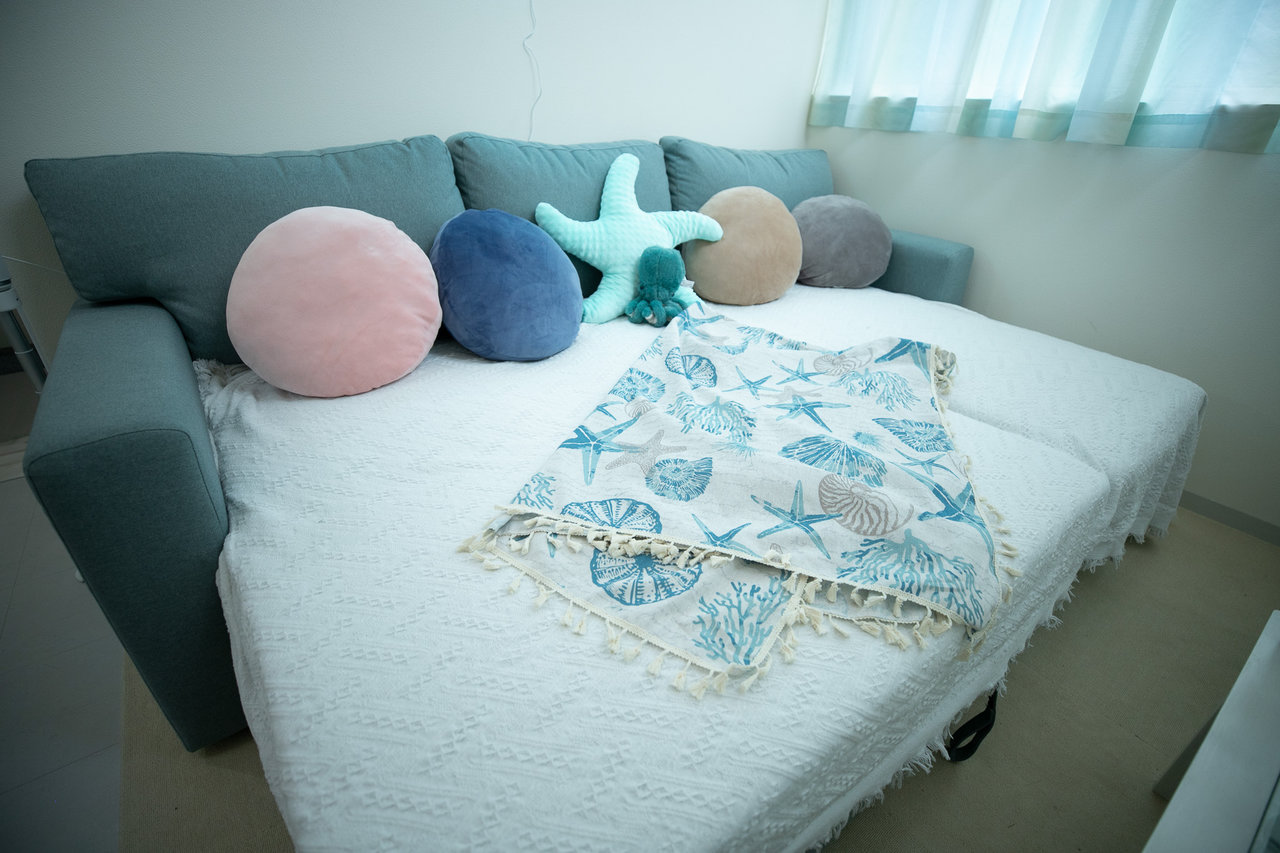 施設内は、ロフトベッドやダイニングスペース、プロジェクター付きのリビングルーム、IHキッチン、洗濯機などを備え、まるで自宅のように過ごせる快適な空間。清掃は毎回プロが対応し、清潔で安心できる環境を提供しています。