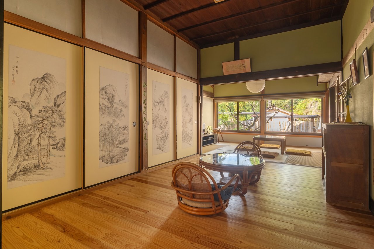 客殿は、襖で仕切られた大小6つの和室からなる開放的な造り。