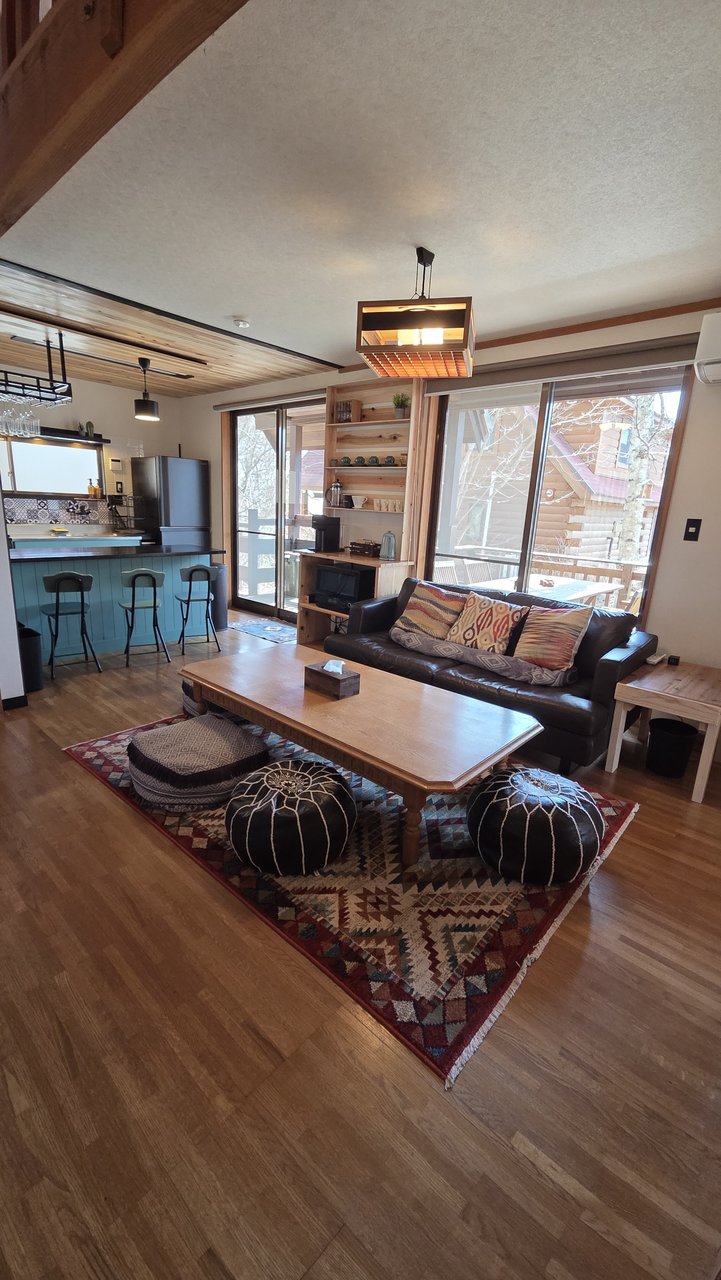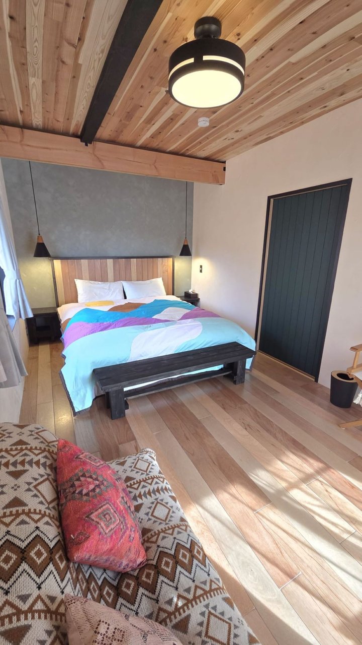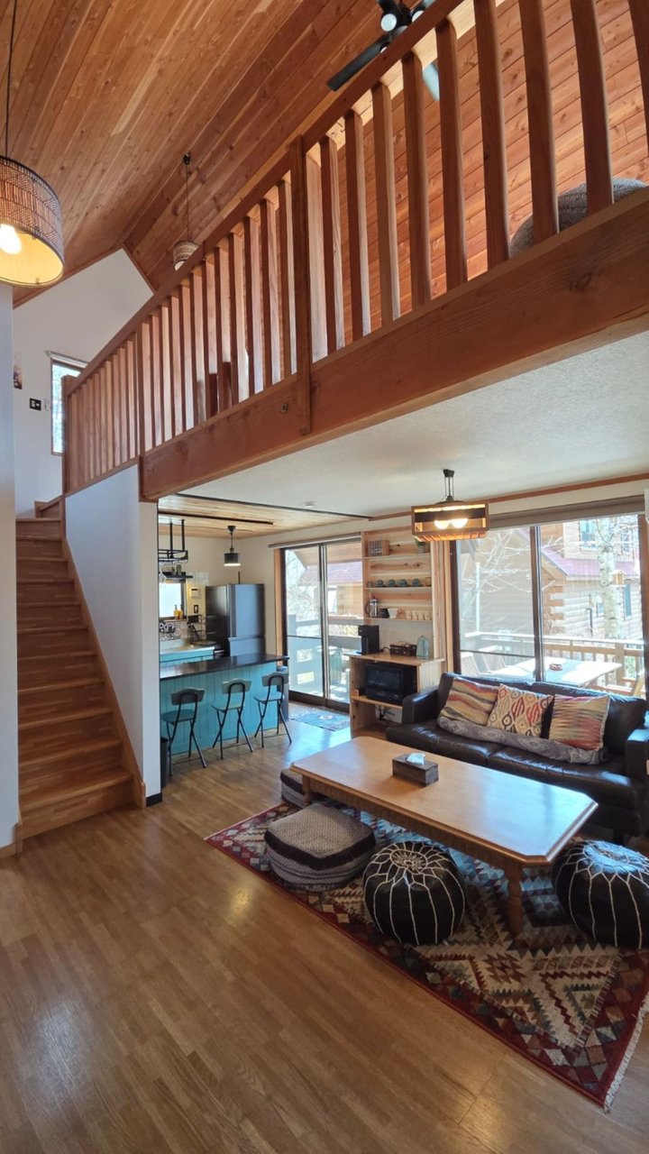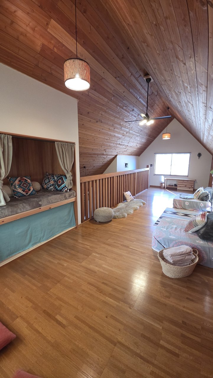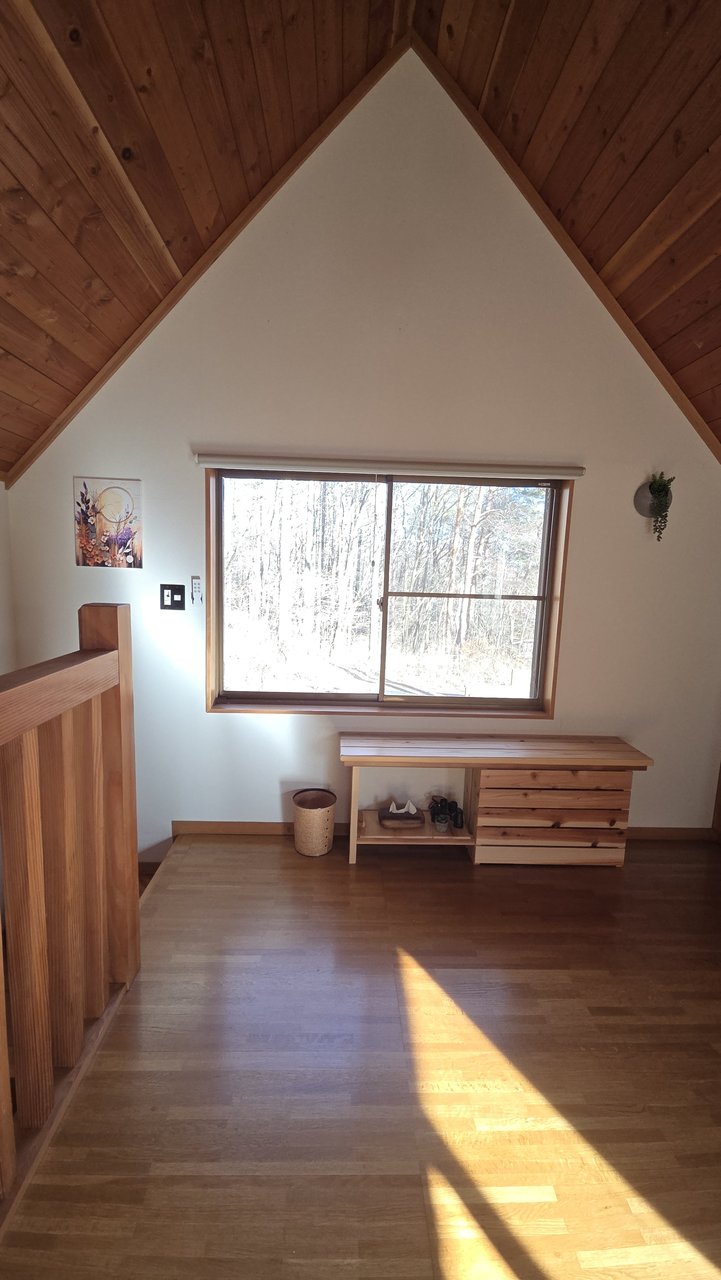 ロフトはグループで利用しやすい布団レイアウトがあり、1階にはクイーンベッドを備えた2〜3名向けの個室を用意しています。広いBBQデッキや屋外ファイヤーピットで、八ヶ岳の澄んだ空気の中でゆったりとした時間が過ごせます。駐車場は最大4台までご利用可能で、駐車スペースにも余裕があり、グループでそれぞれ別々にご到着される場合でも安心してお越しいただけます。