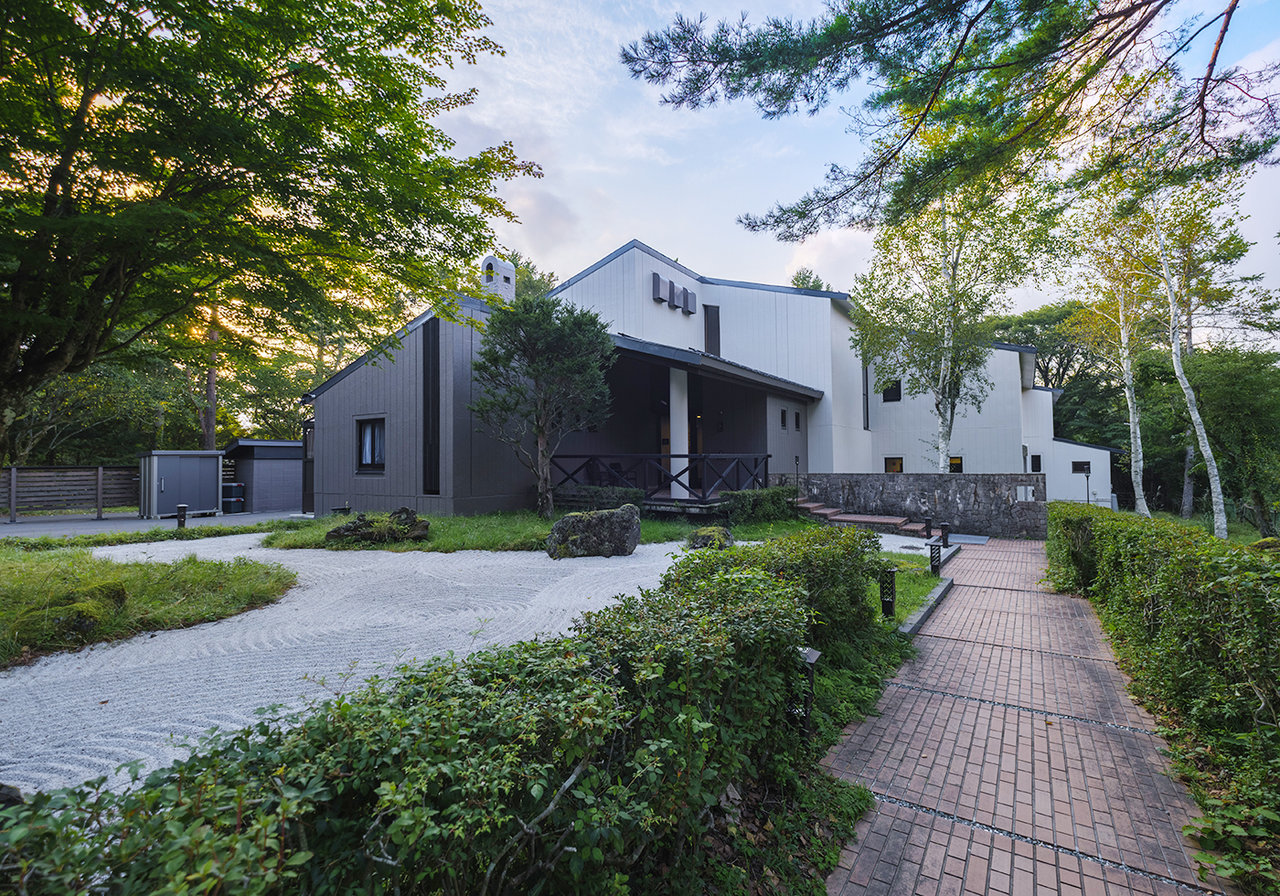 旧金融機関のリゾート施設、竹下工務の設計建築で3300㎡のプライベート中庭、740㎡の宿泊スペース最大20名程度が泊まれる
