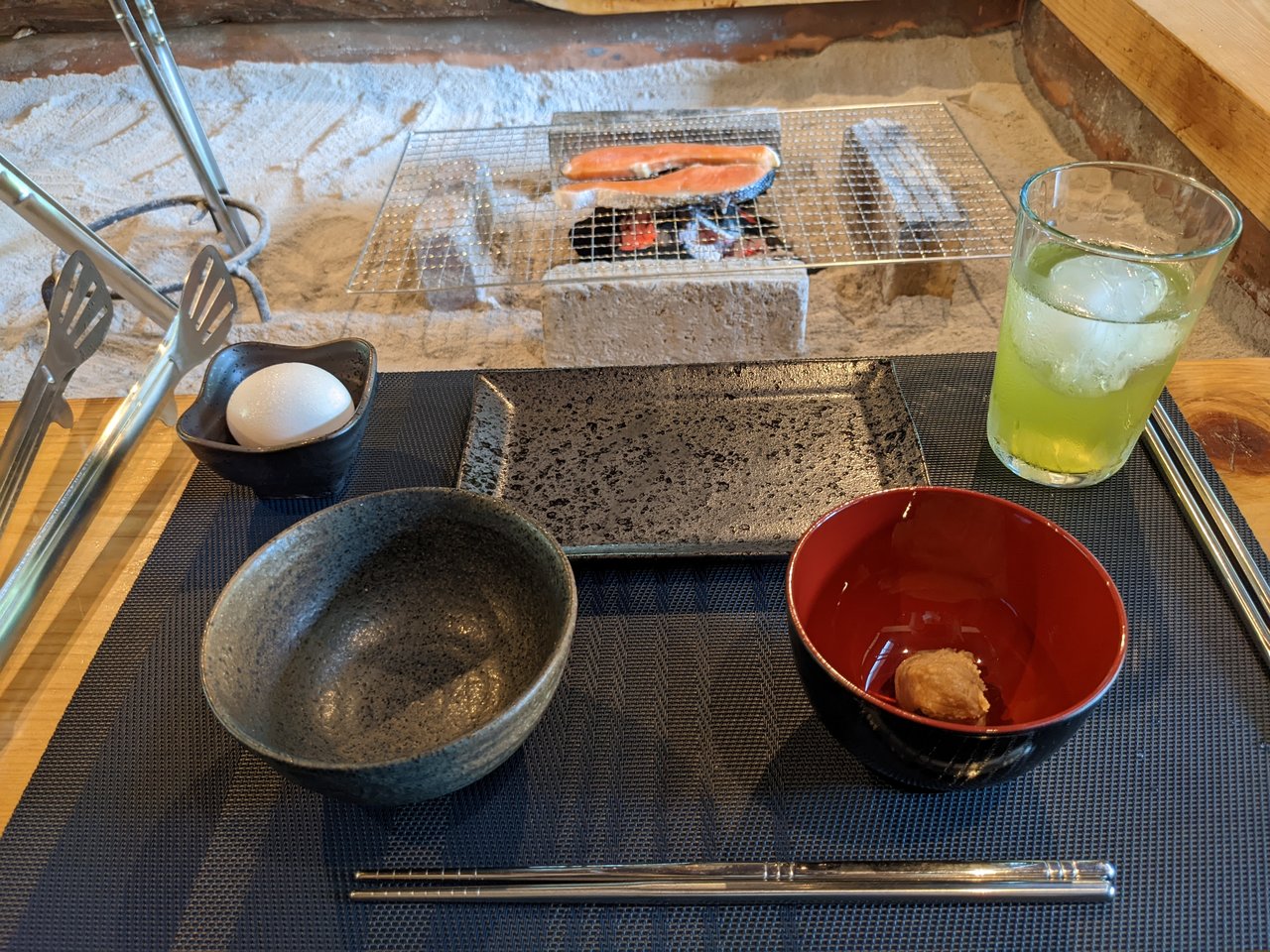 そして いろりのおすすめの楽しみ方 として、ご希望に応じて ヤマメ(塩焼き) のご用意も可能です。香ばしく焼き上げたヤマメは古民家の雰囲気と相性抜群で、「旅先で食べるごちそう」としてとても喜ばれています。お酒と一緒に、ゆっくり囲んで味わう時間は、滞在の思い出をぐっと特別なものにしてくれます。