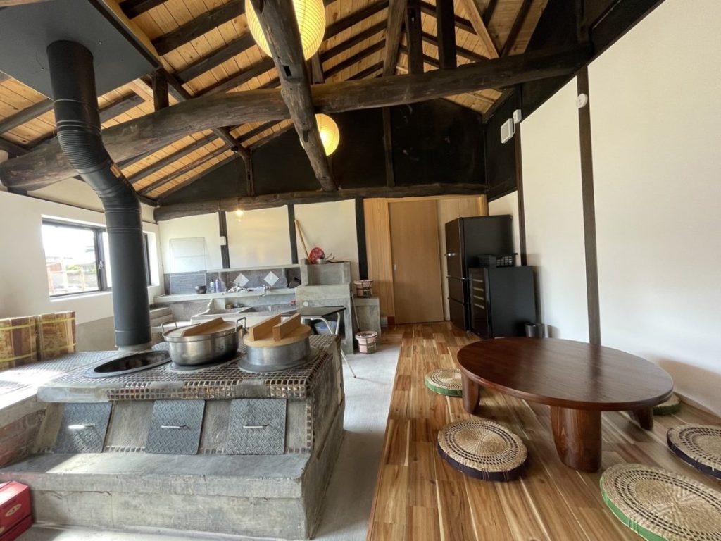 宮城県伊具の最南端に佇む茅葺き屋根の古民家宿。囲炉裏や薪ストーブ、屋根裏部屋などワクワクする空間で、みんなで料理やBBQを楽しめます。広いキッチンで家族や仲間と過ごす時間は特別な思い出に。自然豊かな集落でゆったりとしたGW旅におすすめ。
