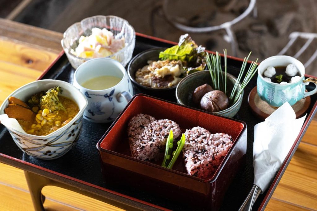 築140年の養蚕農家を改装した一日一組限定の宿。自家栽培の有機野菜を使った料理はもちろん、蔵での肝試しやヤギとの触れ合いなど、遊び心満載。川遊びや山の散策のお供に、自分で握るおにぎりランチも忘れられない思い出に。