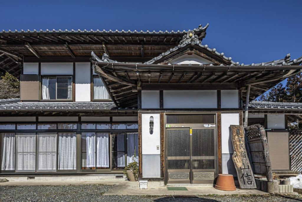 天山の麓、湧水が流れる築100年の古民家。6月にはホタルが舞う幻想的な景色が広がります。併設のレストランで自家菜園の恵みをいただき、そば打ちやみかん狩りなど、多彩な体験を通じて心と体をリセット。
