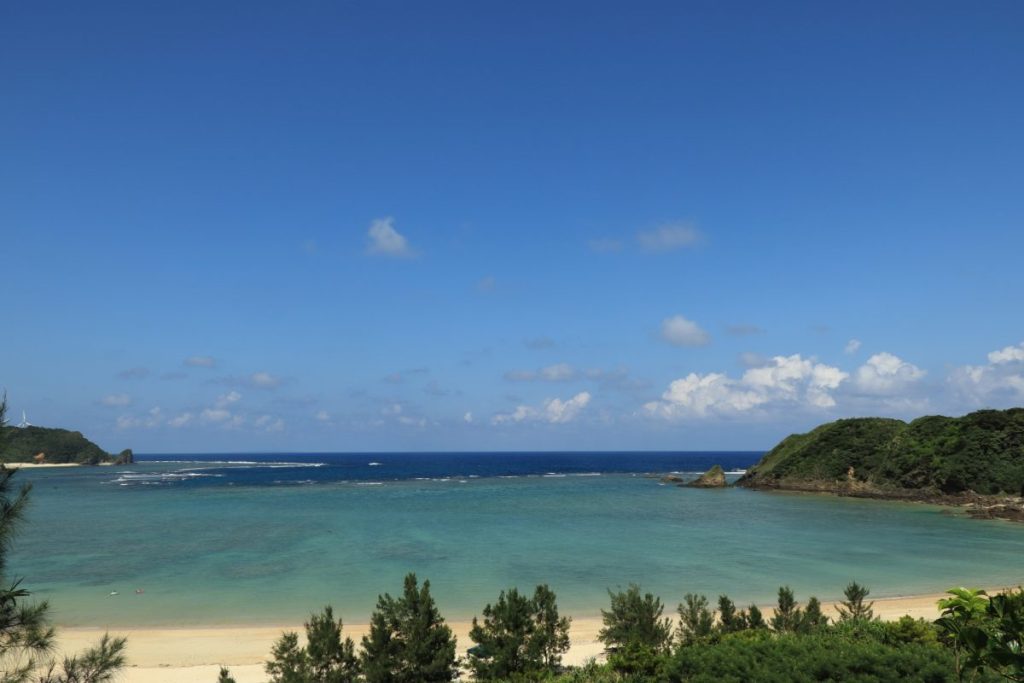 南国の碧く静かな海。波が穏やかで子連れにもおすすめの癒しビーチ。