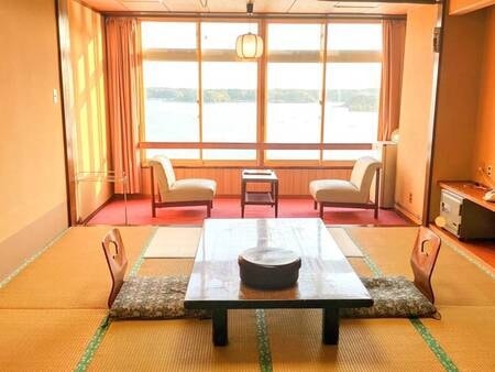 あおきやは加茂湖を見下ろす高台に建ち、全客室から湖の絶景を一望できる特別な旅館です。館内の温泉は、ナトリウム塩化物泉のやさしい湯で、外傷や冷え性にも良いとされる泉質。2023年には総檜風呂「羽衣」や露天風呂テラス「飛天」がリニューアルされ、能舞台をイメージした大浴場「夢幻の湯」など、趣向を凝らした湯処が楽しめます。朝と夜で男女入れ替え制なので、滞在中に異なる雰囲気を味わえるのも魅力です。