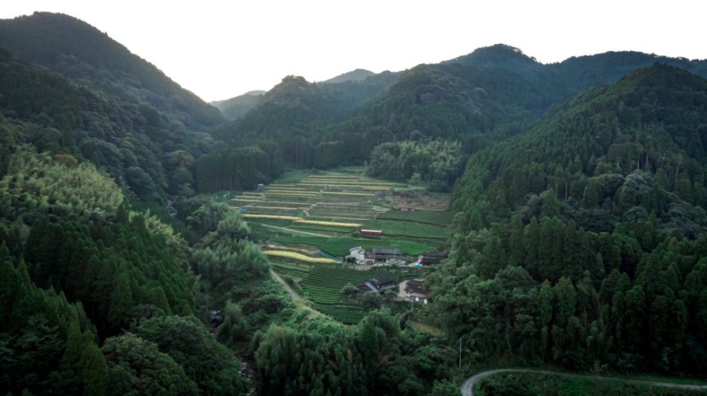茶畑と棚田を望む、天空の絶景バルコニー付き宿
